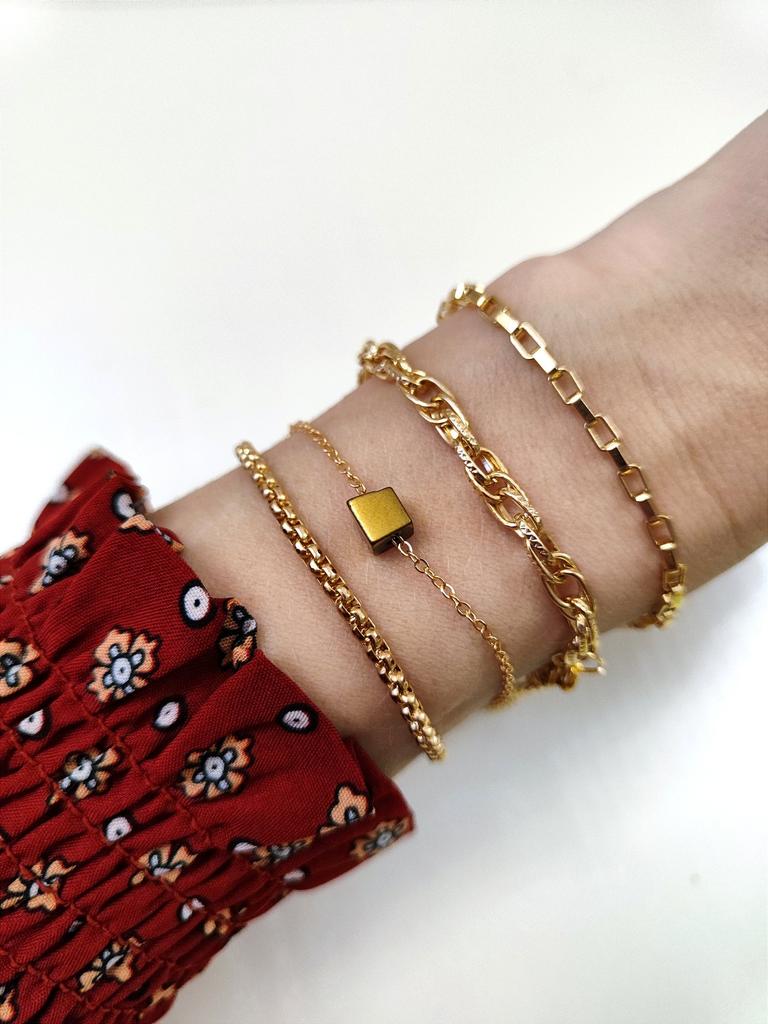 4 Piece Bracelet Cube Detailed Quadruple Combination Bracelet Cube Combination Bracelet,Jewelry Accessory Gift