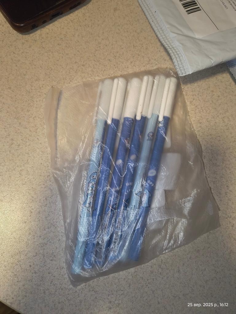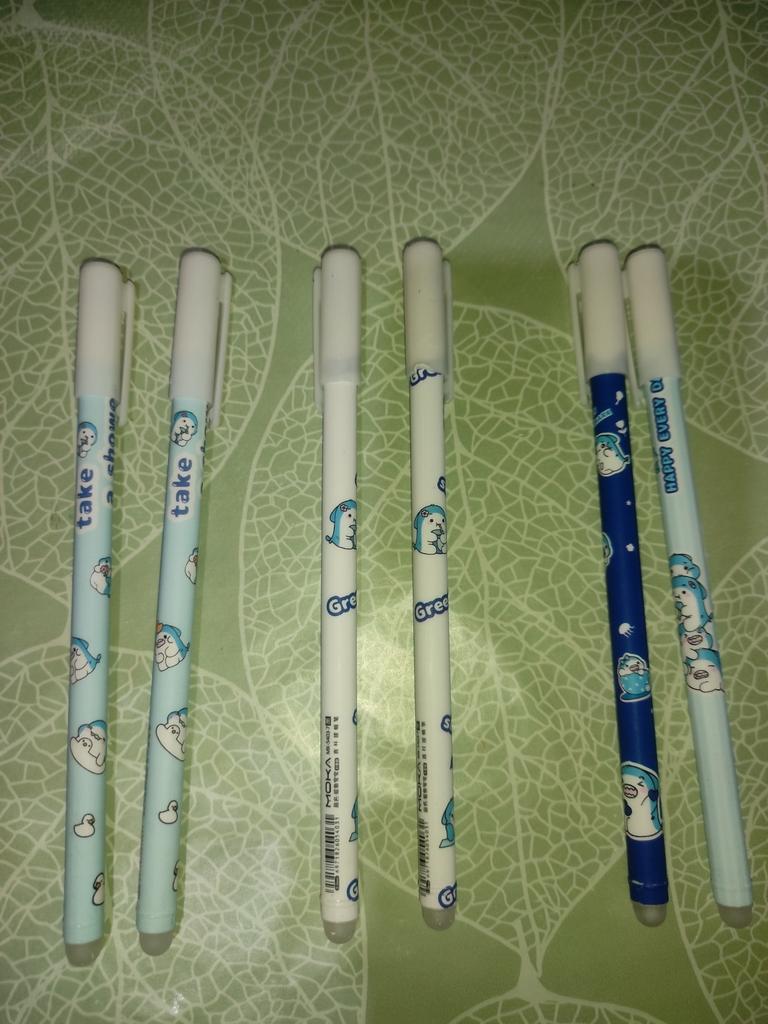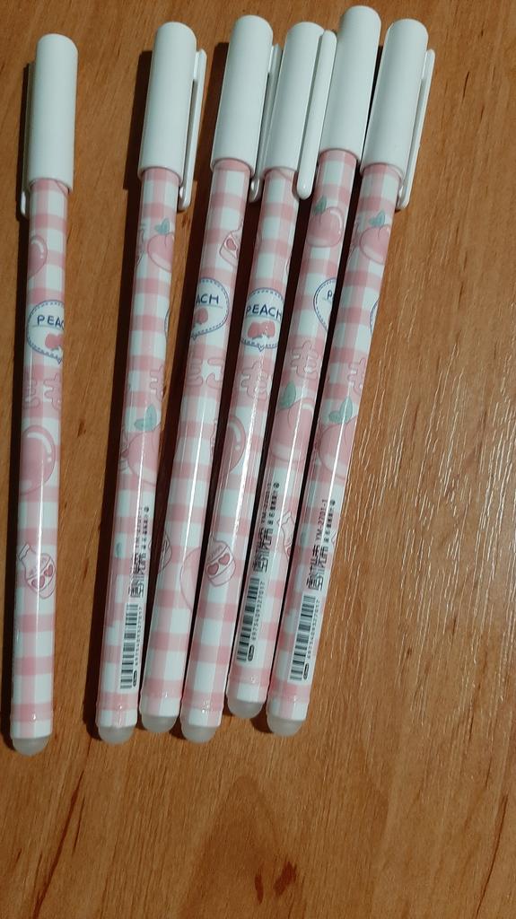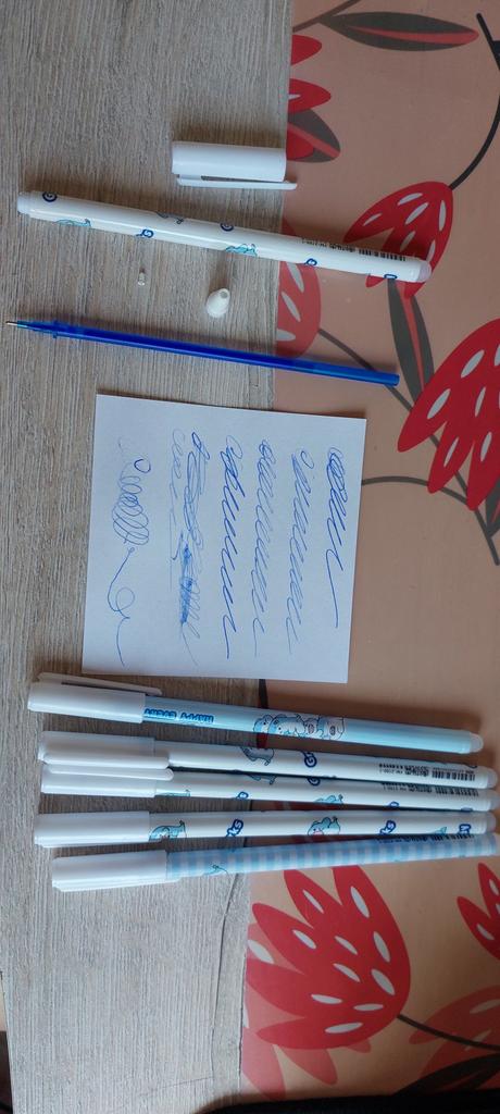 Beautiful erasable penalties They arrived intact without defects and within the expected delivery times They have a thin tip, blue color and it's not difficult to write Erases very well without leaving any traces Thanks to the seller Thanks Joom I highly recommend