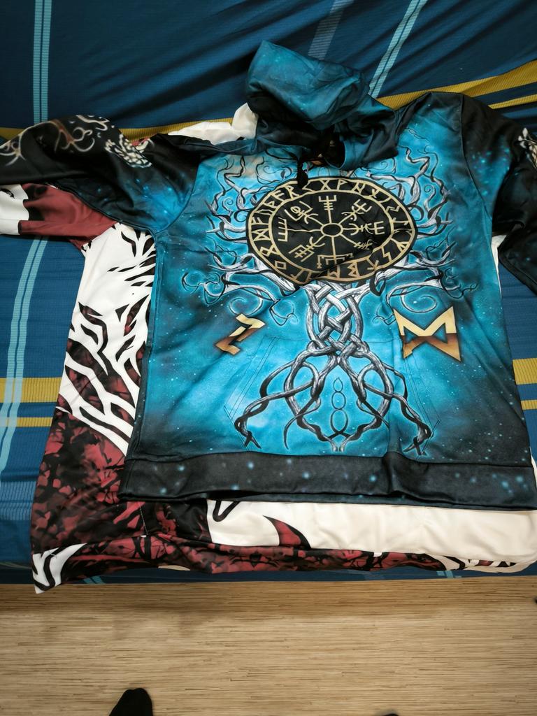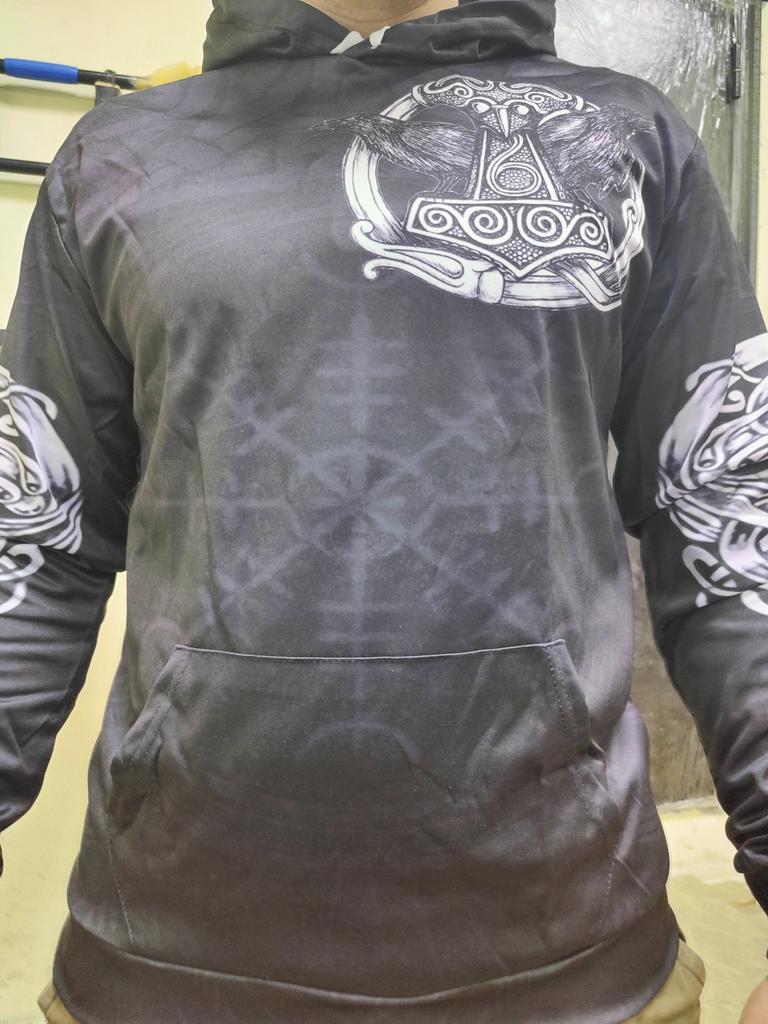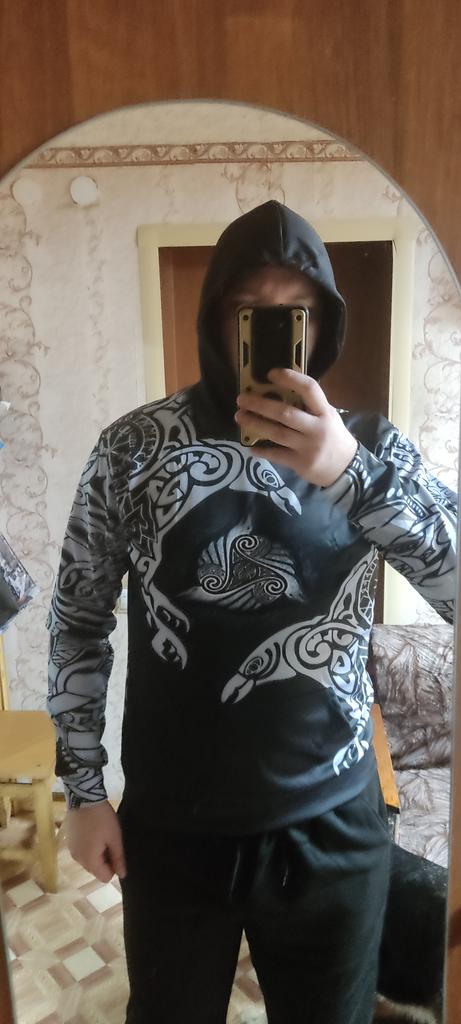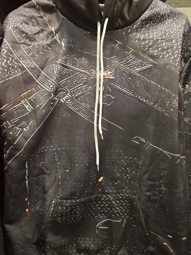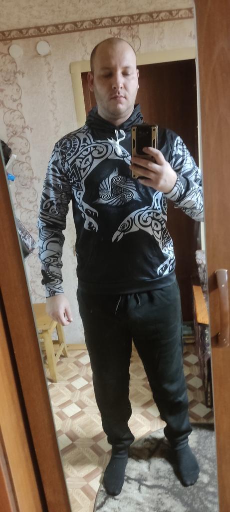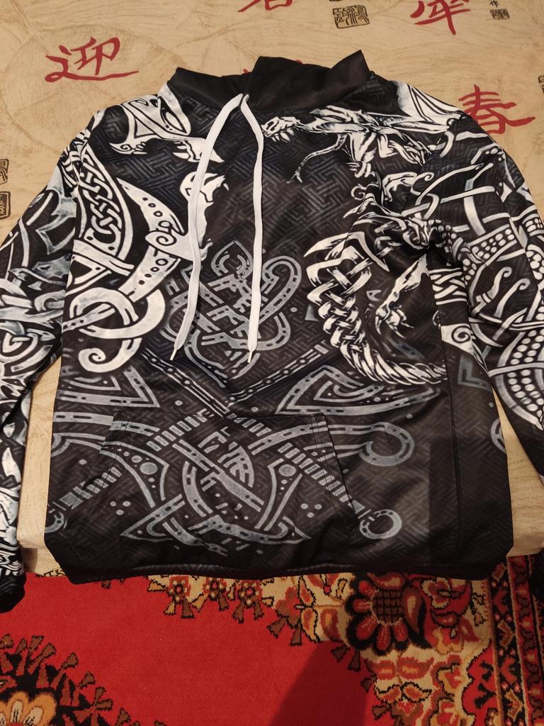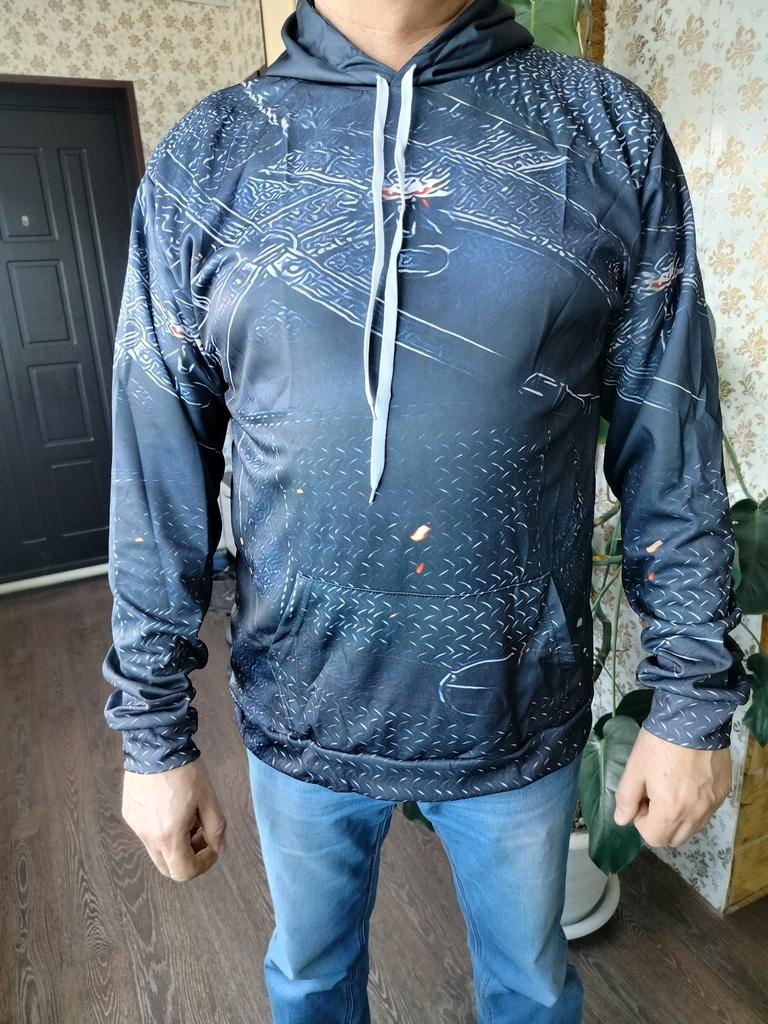 A fairly high-quality sweatshirt. Although completely flimsy, the lining is very pleasant on the body. The picture really looks spectacular, how it will stand the test of time - we'll see.