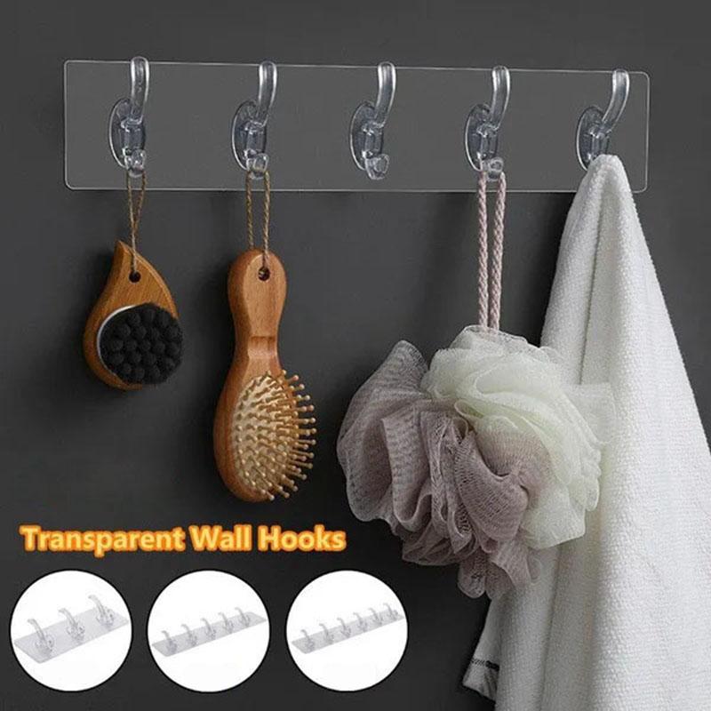 Hook Transparent Bathroom Wall Hanging Home Finishing Storage Tool Punch-free Continuous Row of Hooks Strong and Seamless Door Hanger