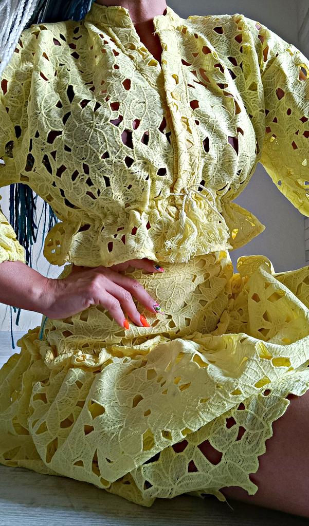 ✅ Lightweight and breathable — ideal for hot weather ✅ Complex, elegant pattern — looks expensive and attracts attention ✅ Perfect fit — accentuates the figure, but remains comfortable Mood — like lemon sorbet on the coast! 🍋✨