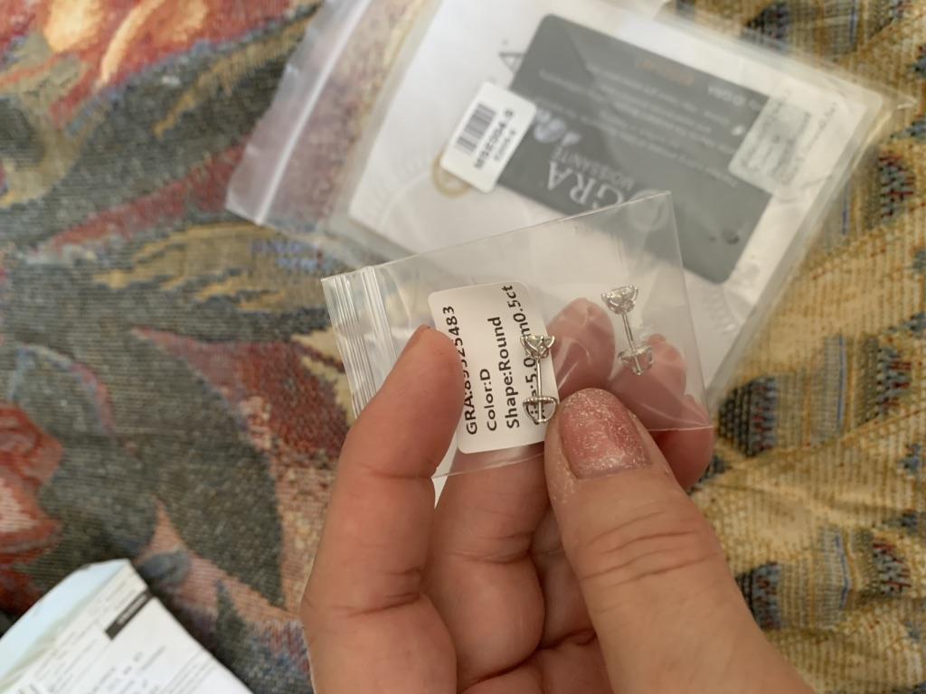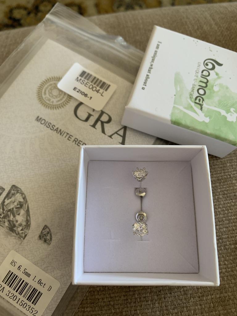The order arrived in Chisinau in a month and a half. I like the earrings, they are cute, only one has a bent clasp. They came with all the moissanite certificates.