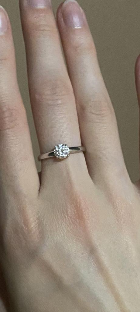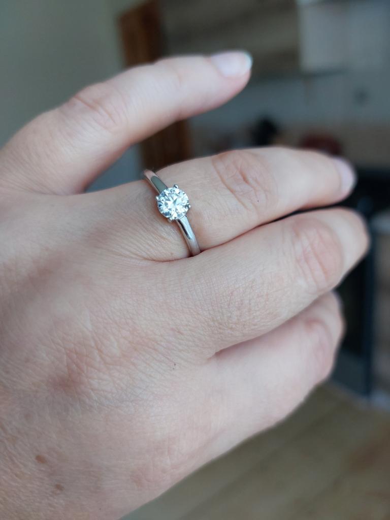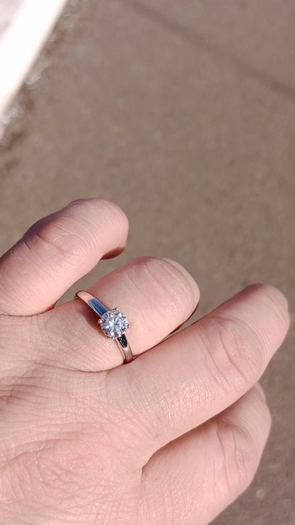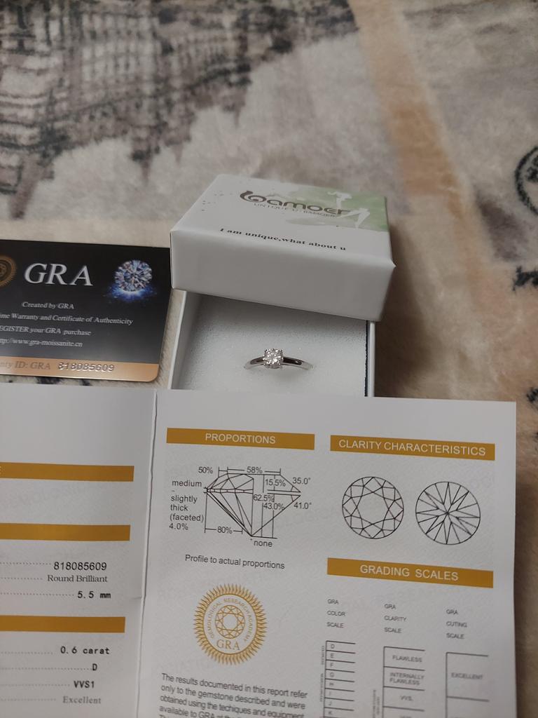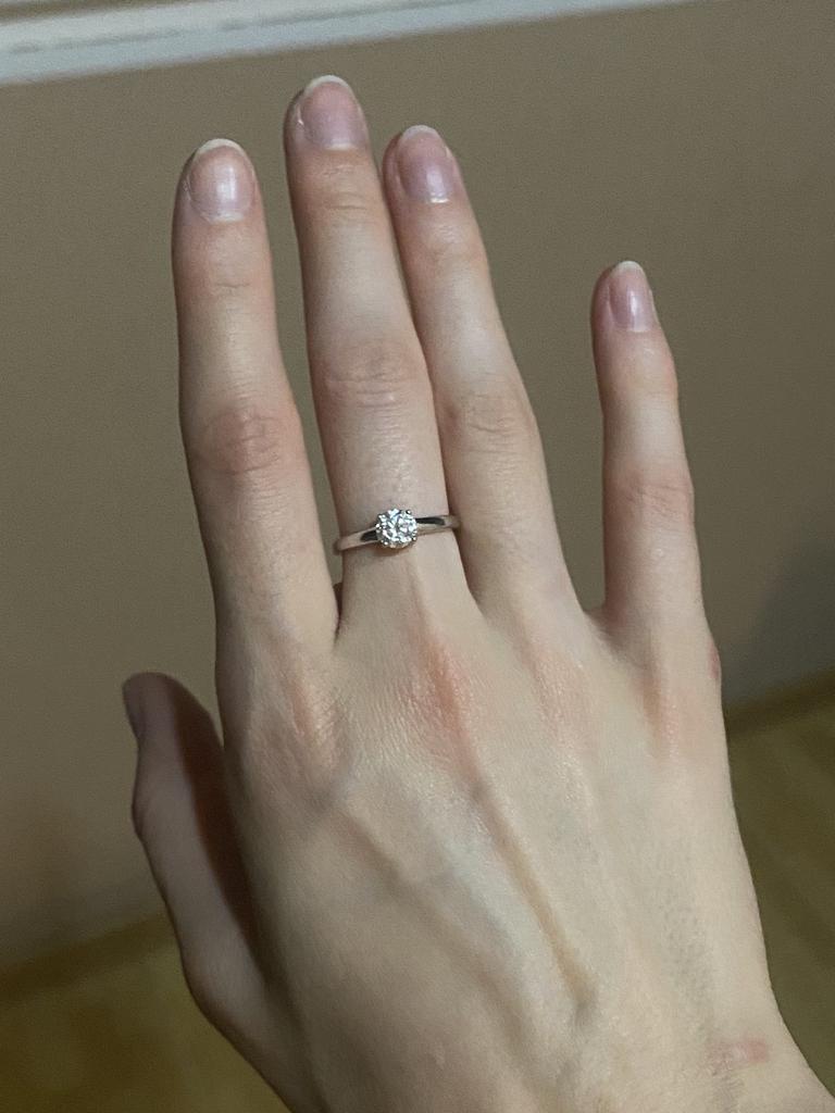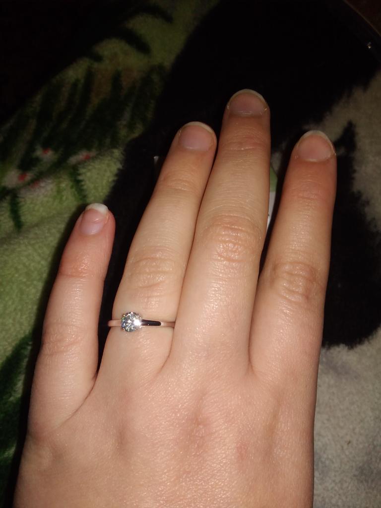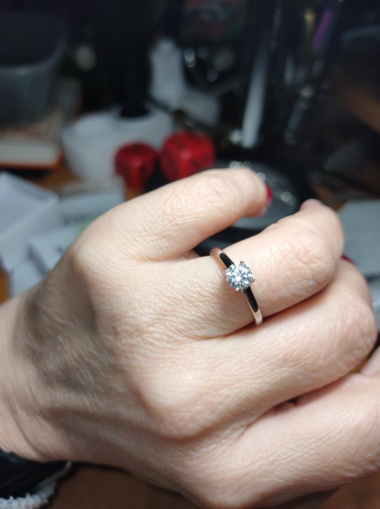 The ring is very delicate, beautiful. It looks expensive, as if made of white gold, and the stone sparkles like a diamond. I am very satisfied with the product, although the ring is simple, but it attracts attention. I definitely recommend it and even ordered the same size 6 for my daughter. There is also a certificate for the fireplace. Now this ring is mine ❤️❤️❤️❤️❤️