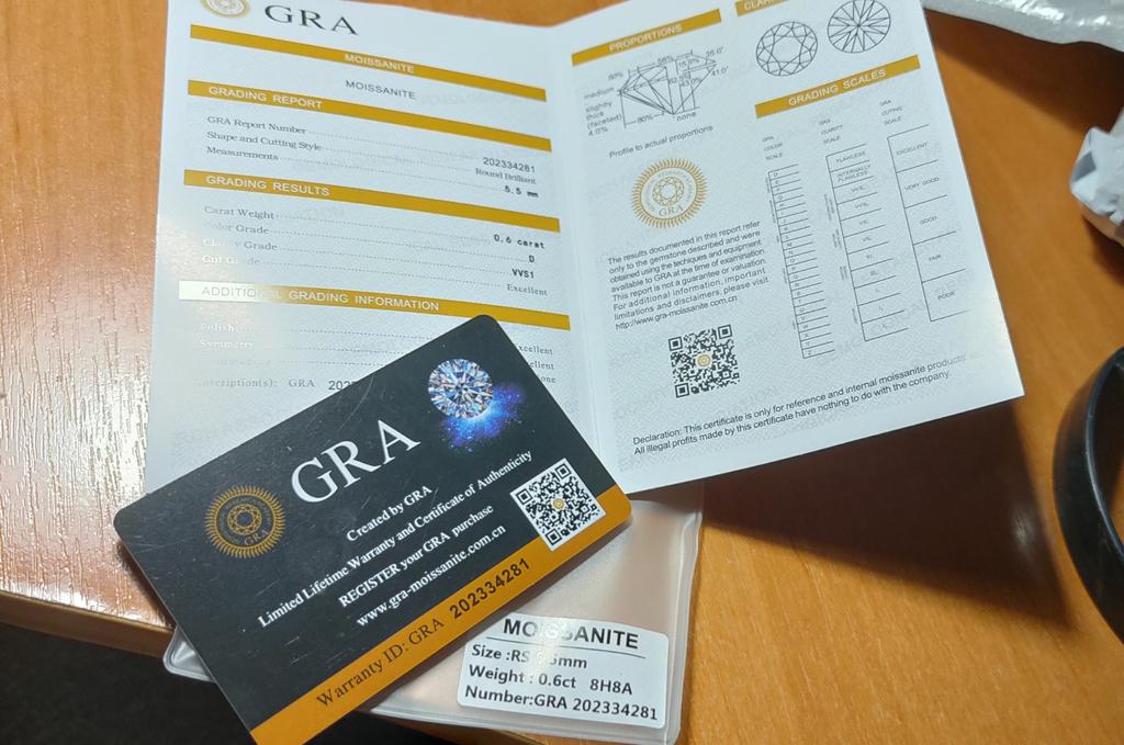 The description says moissanite is 0.8 carats, but it was 0.6 carats.