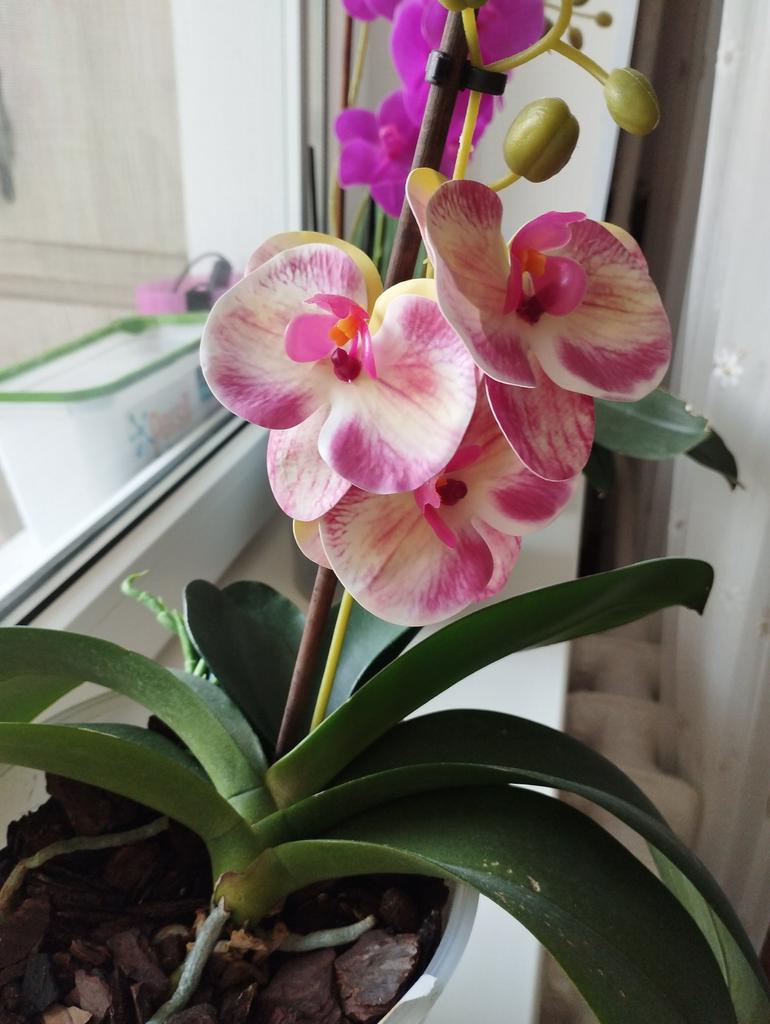 Very beautiful orchids. The flower is not fabric. Can be washed. There is a specific smell. I think it will go away quickly. I'm waiting for more colors.