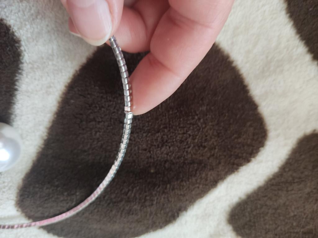 It looks beautiful on a thin neck, but bends very easily and is made of some kind of plastic.