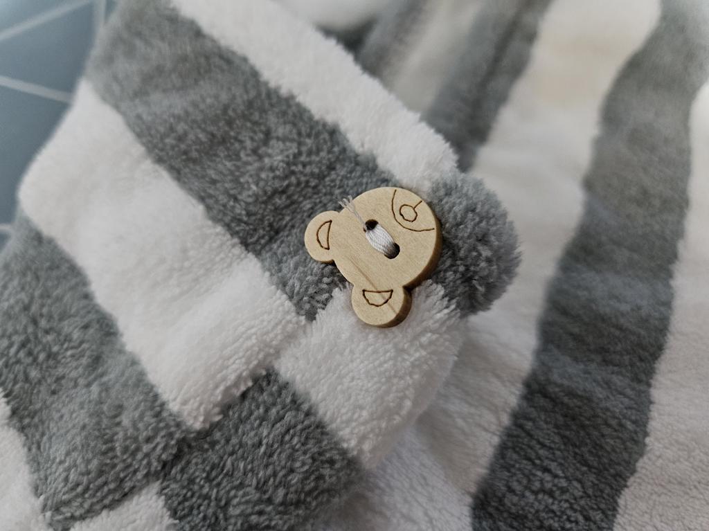 it looks smaller than the usual towels I get for some reasons, but when comparing I saw it's just a tiny bit shorter. cute bear as a button, I hope it will hold well