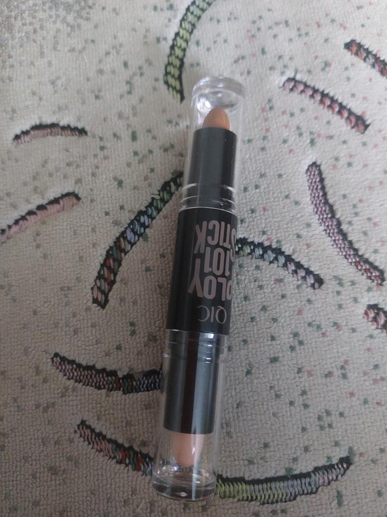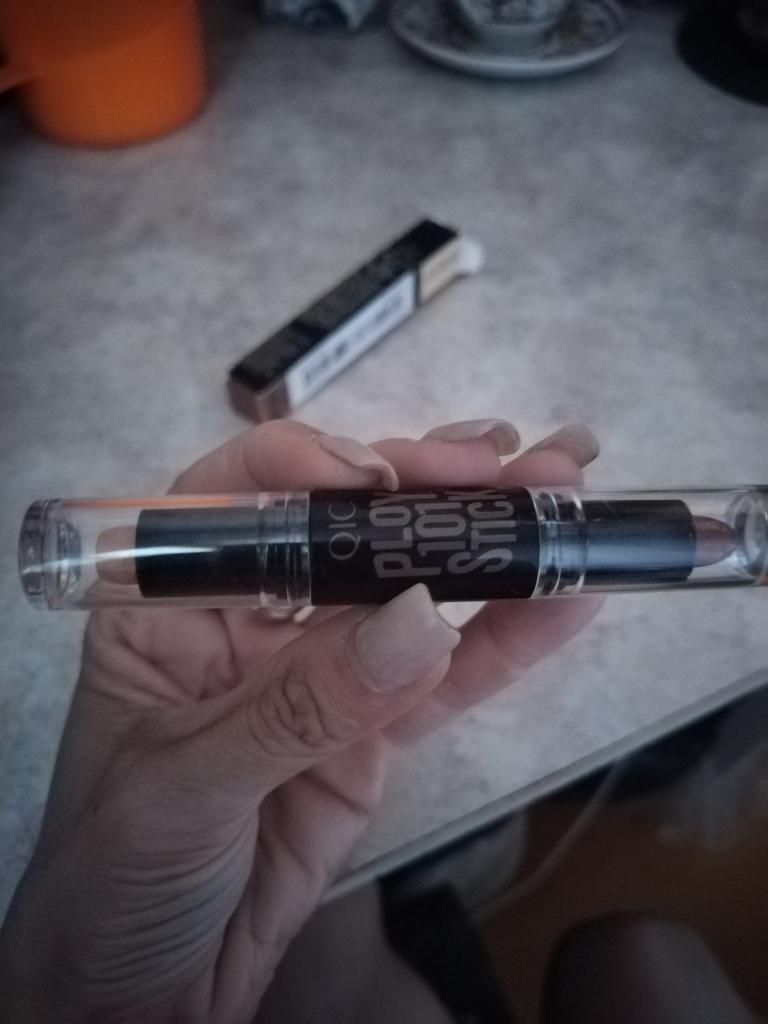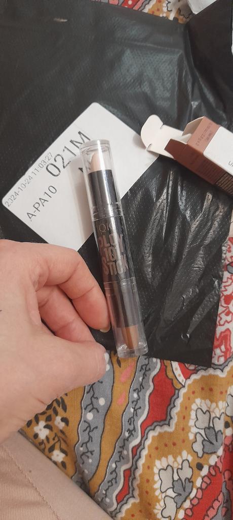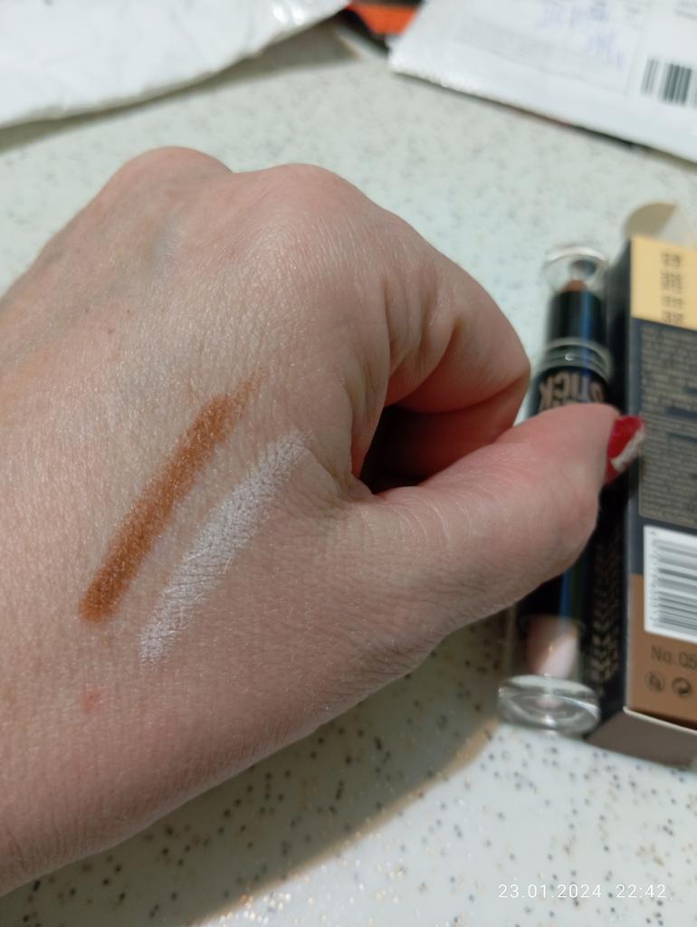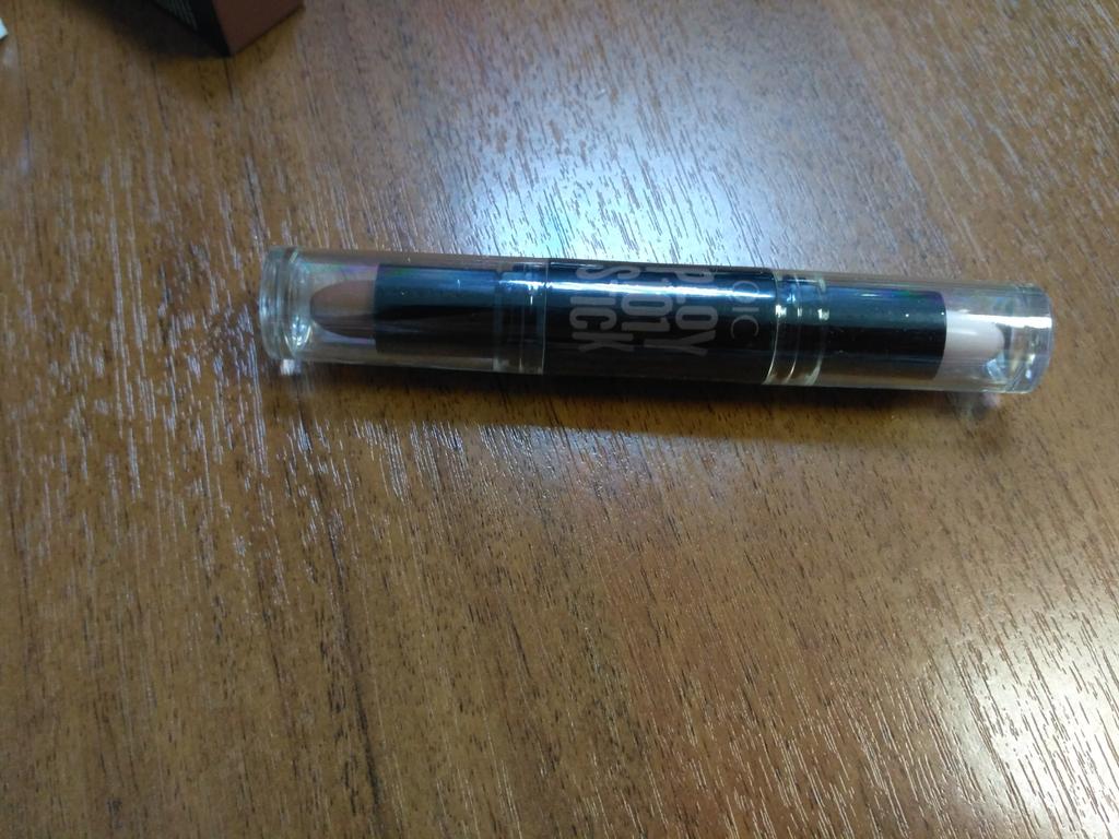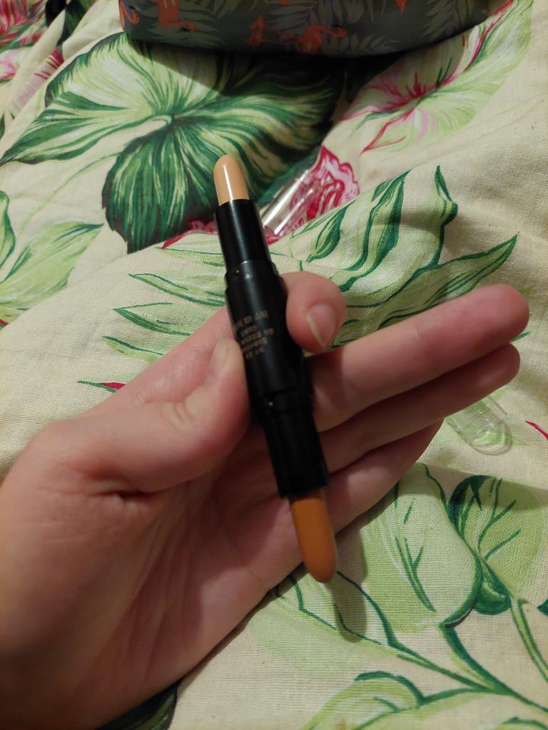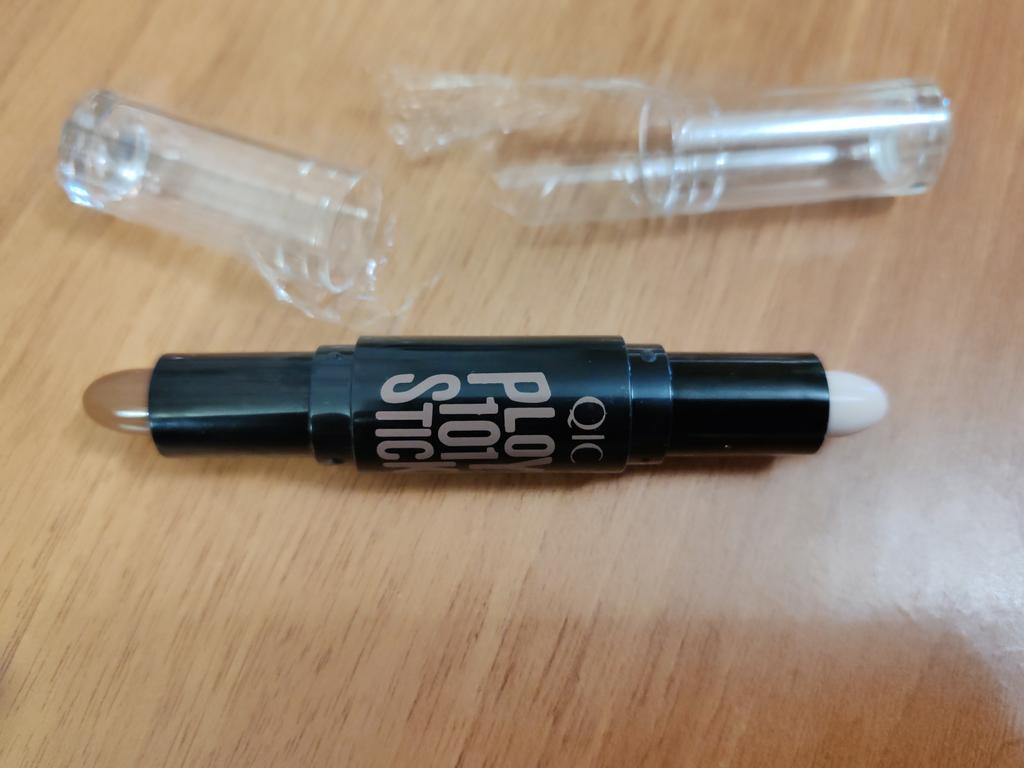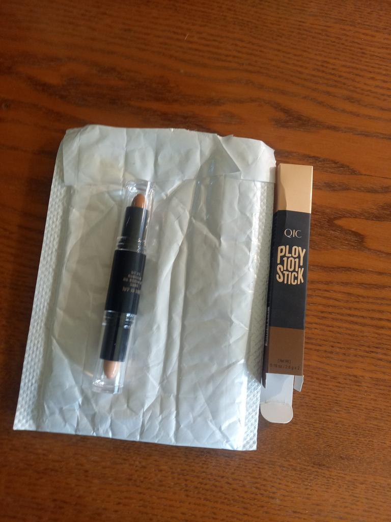Good highlighter. Packed in a box, everything is neat. On one side is a light tone, on the other side is dark. There is a slight smell, but when applied to the skin, it goes away. Overall, I am happy.