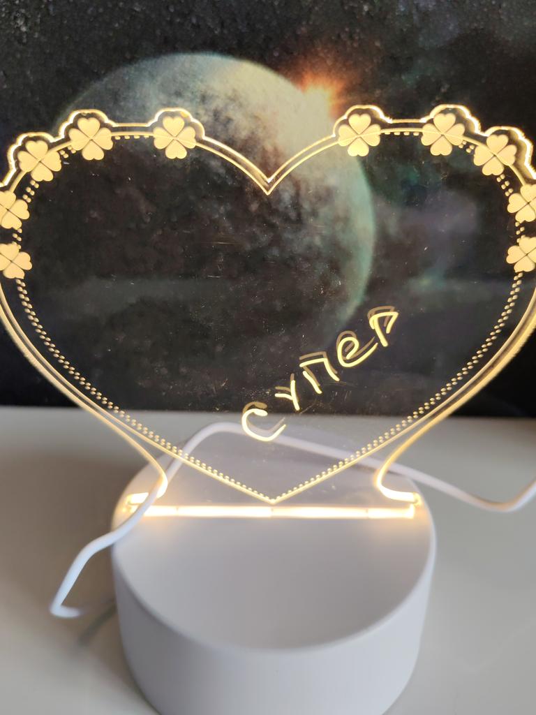 Beautiful board and lights in the evening, my daughter drew a kitty on it. I recommend it.