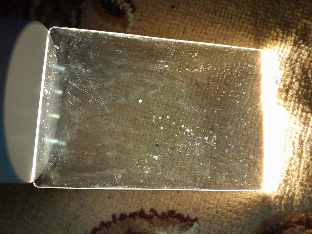 I managed to remove the film after several attempts. It works, shines well, but the plexiglass scratches easily and it is very visible through the backlight.