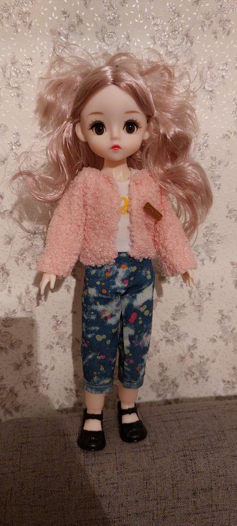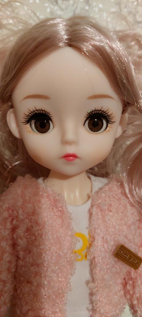Super doll with articulation points and beautiful clothes. A very pretty face with eyelids that open and close.
