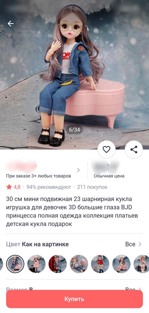 In general, the doll is nothing special, better in the picture. The hair is terrible, a bald spot on one side, unevenly cut. The blouse is too big