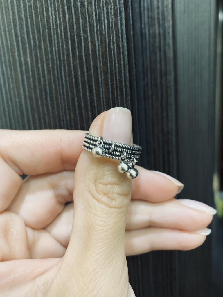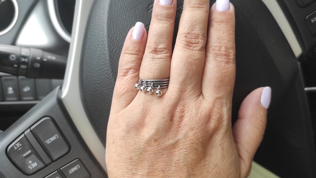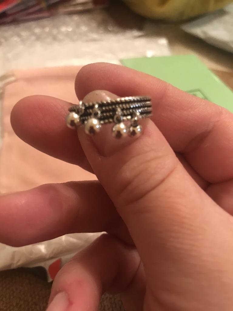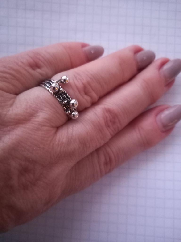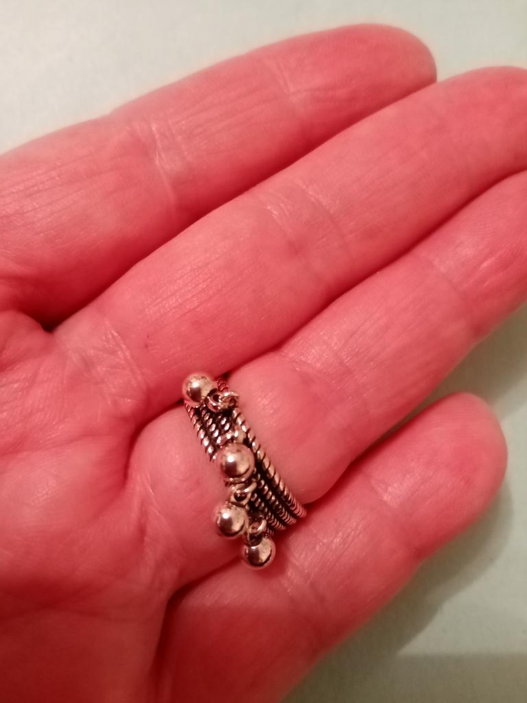 A lovely ring with pendants. They are mobile and jingle pleasantly when you move your hand or fingers.