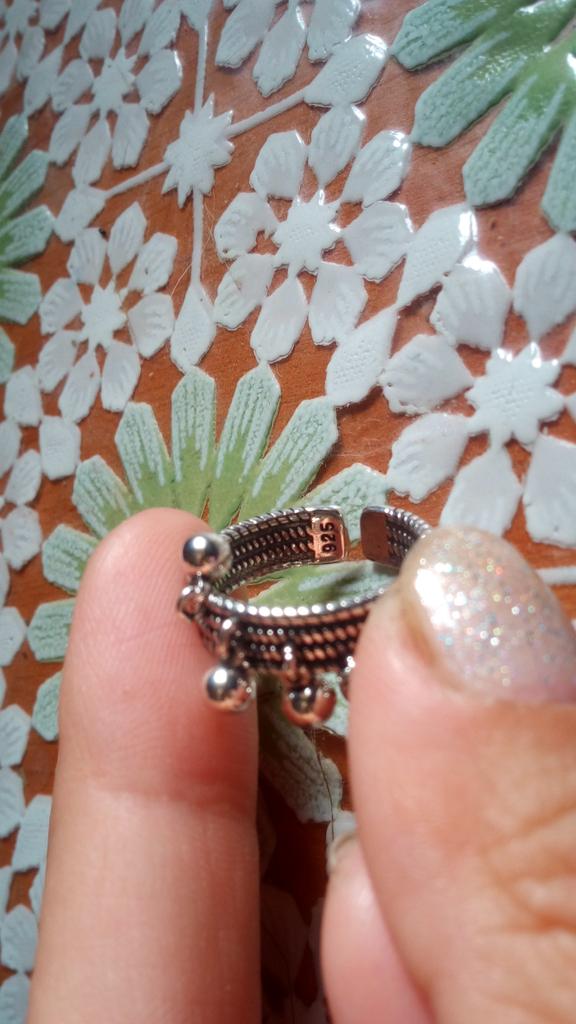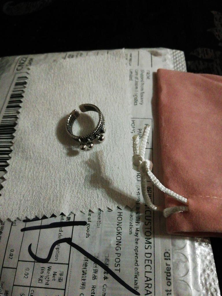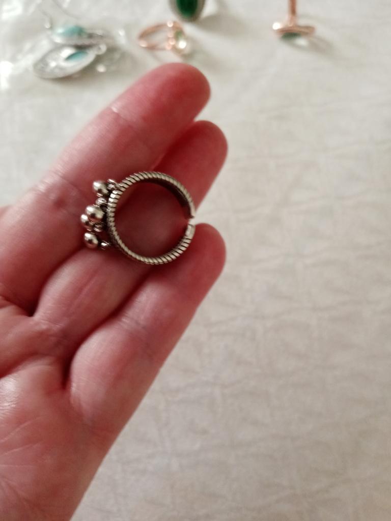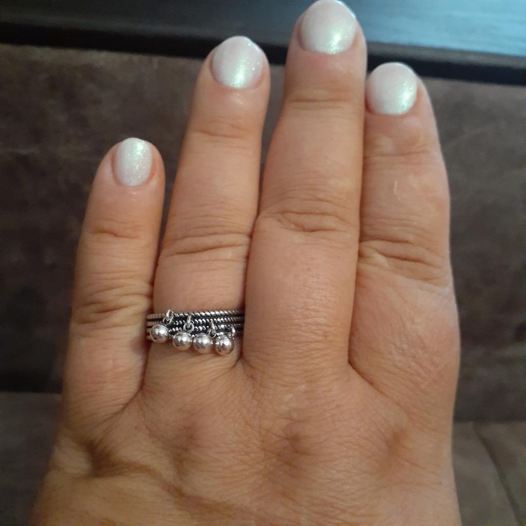 A lovely ring with pendants. They are mobile and jingle pleasantly when you move your hand or fingers.