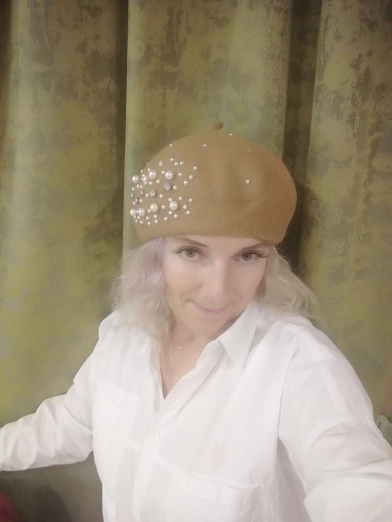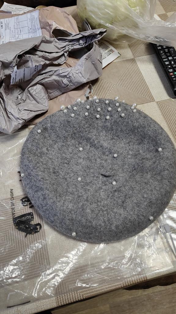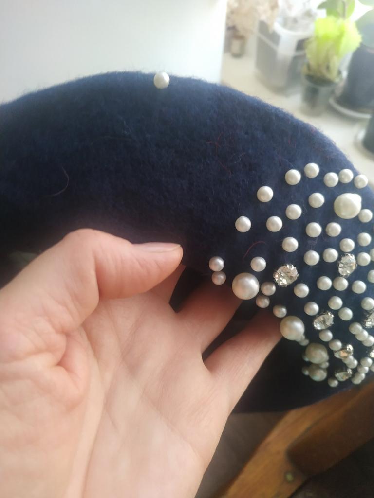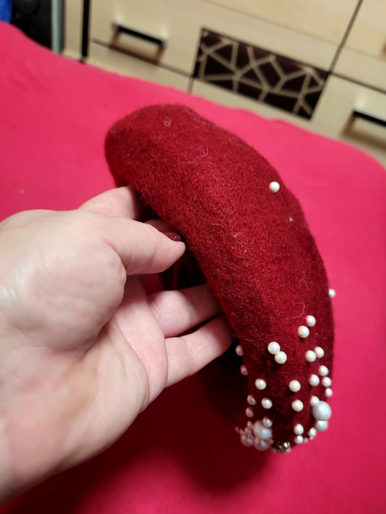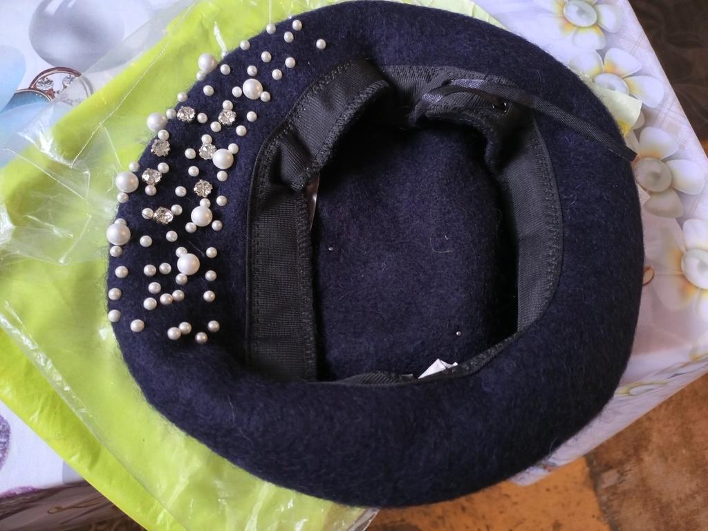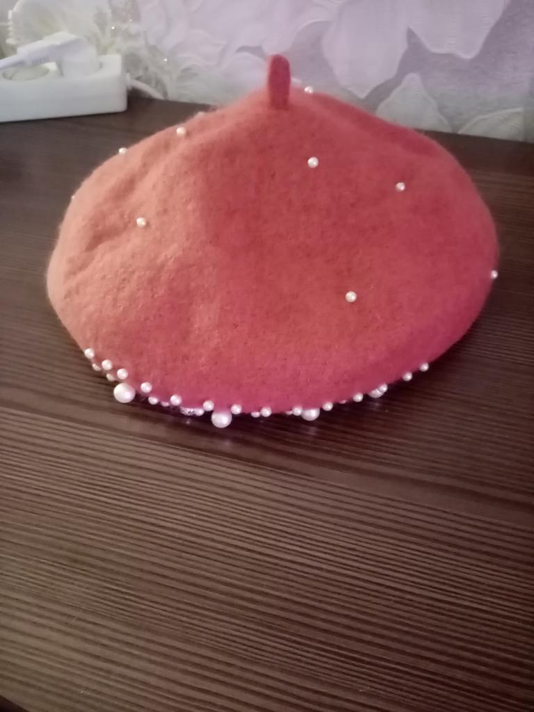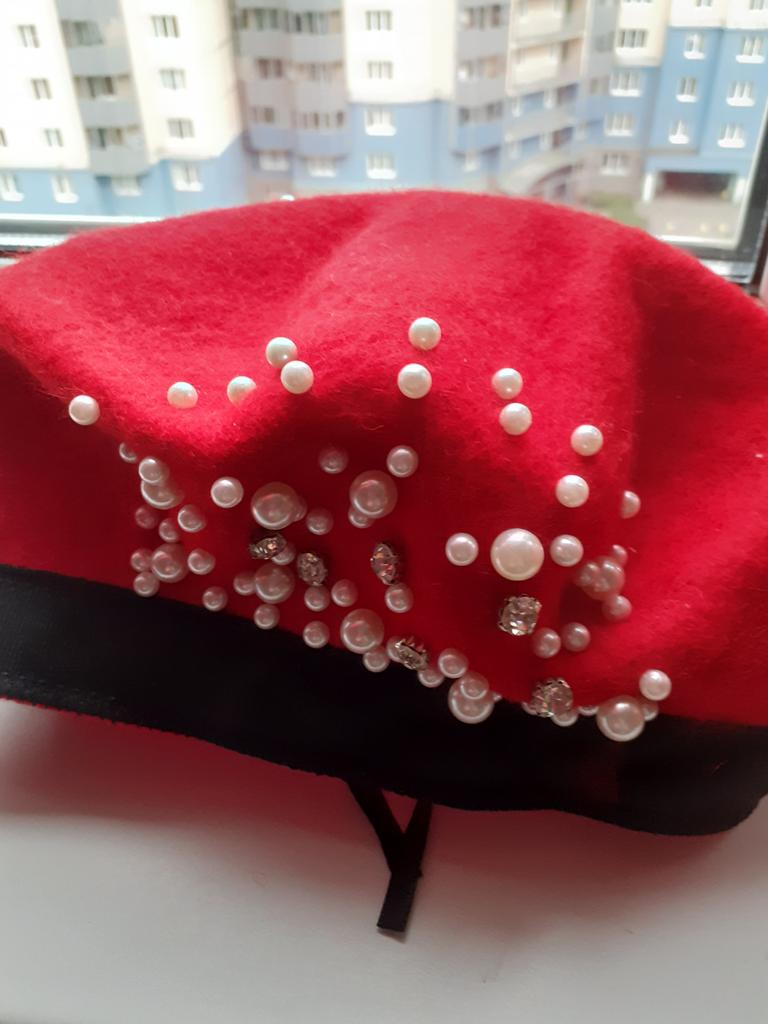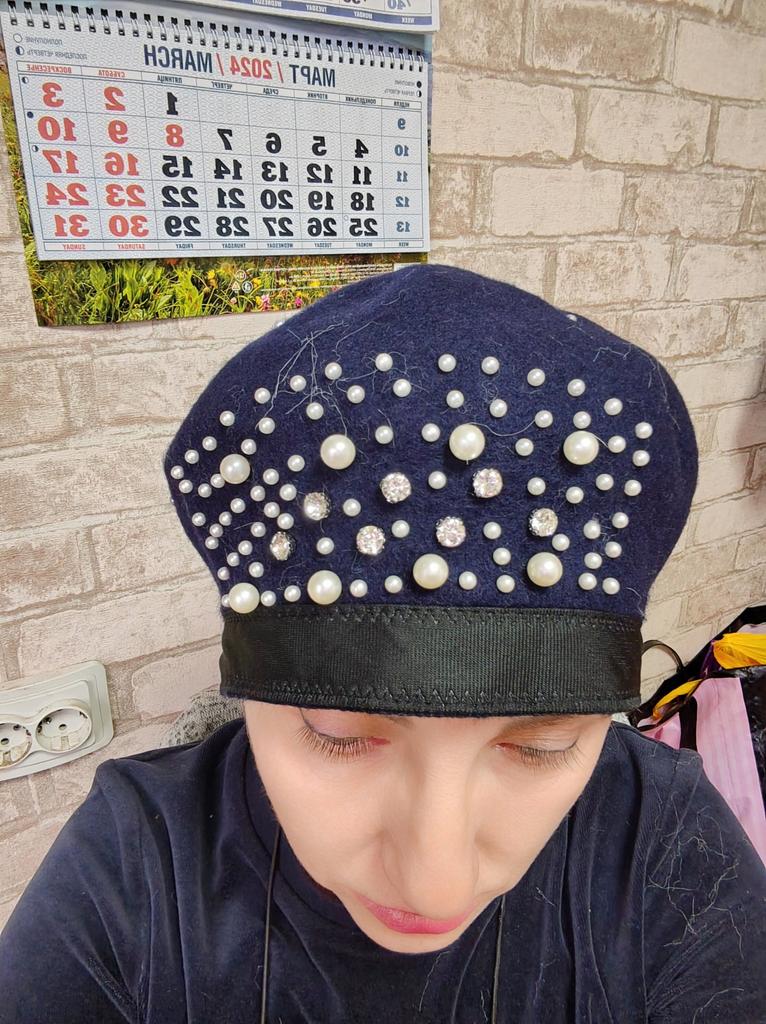 The beret is beautiful, but a bit narrow in volume, and the decorations are sewn directly to the edge. I had to remove the inner ribbon and stretch it on a jar. Nevertheless, even after that, it's a bit tight for size 56.