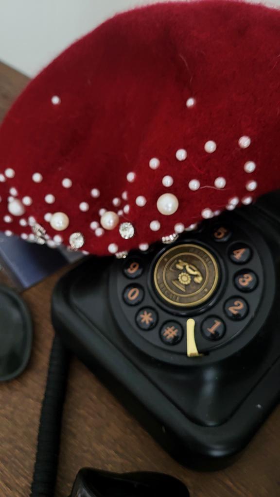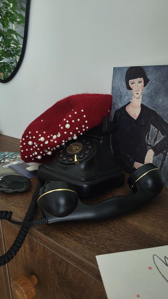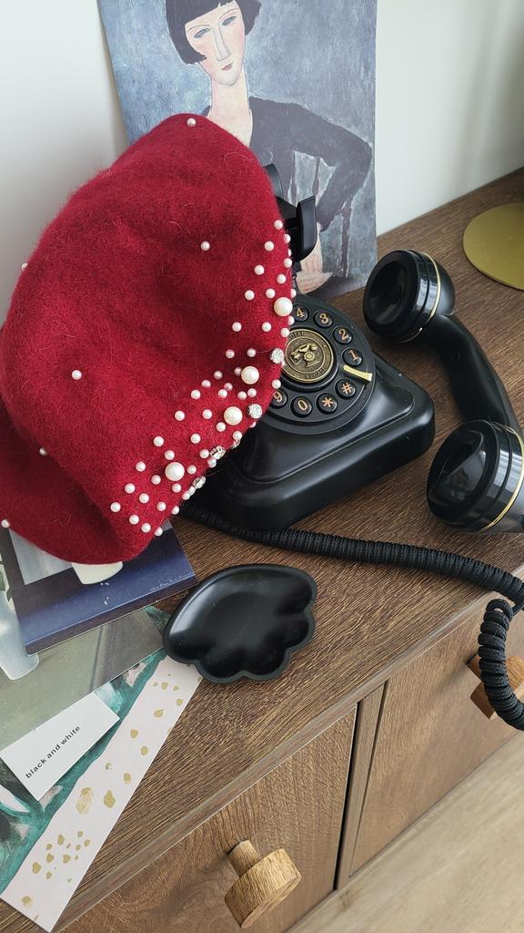 Pearl Beret Hat for Women Cashmere Winter Retro French Winter Black Red French Artist Flat Fashion Solid Color Lady Vintage Cap