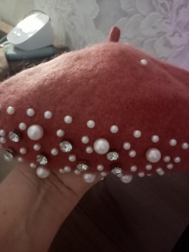 The received product does not match the seller's photo. In the photo, the beret is not densely beaded, but in fact, on the received beret, an area of ββapproximately 4 cm by 15 cm is densely covered with beads and rhinestones. I would never order such bad taste.