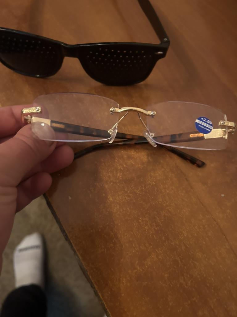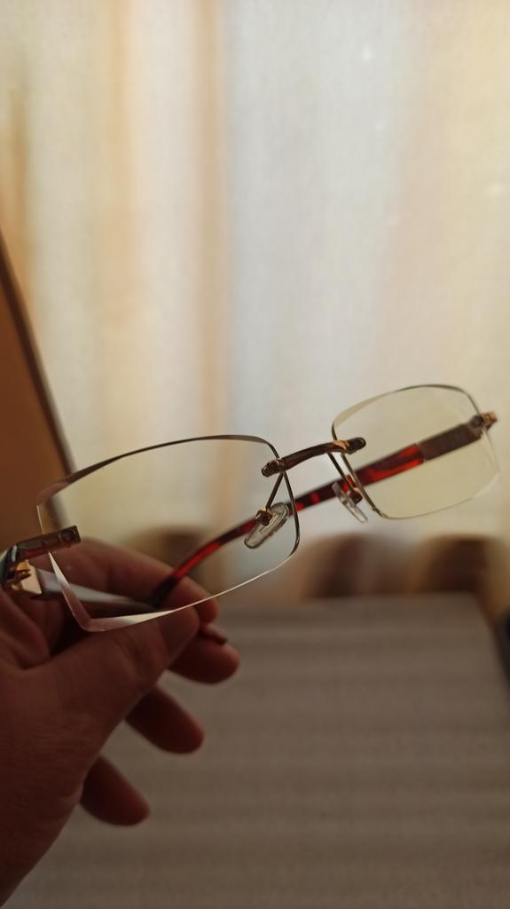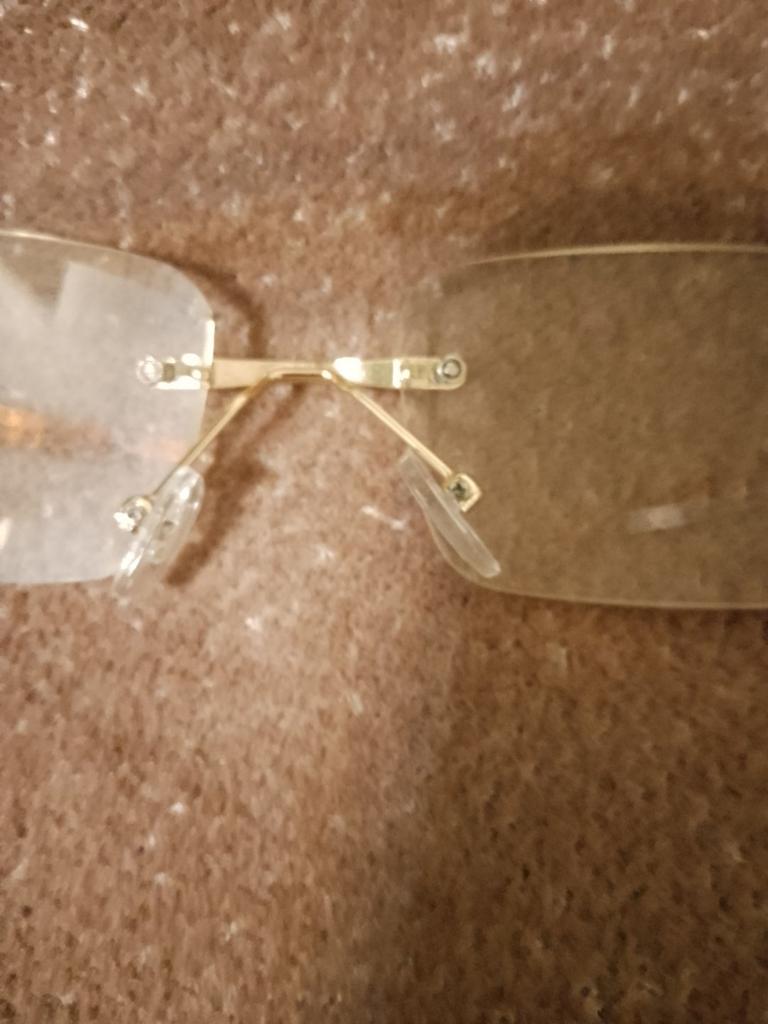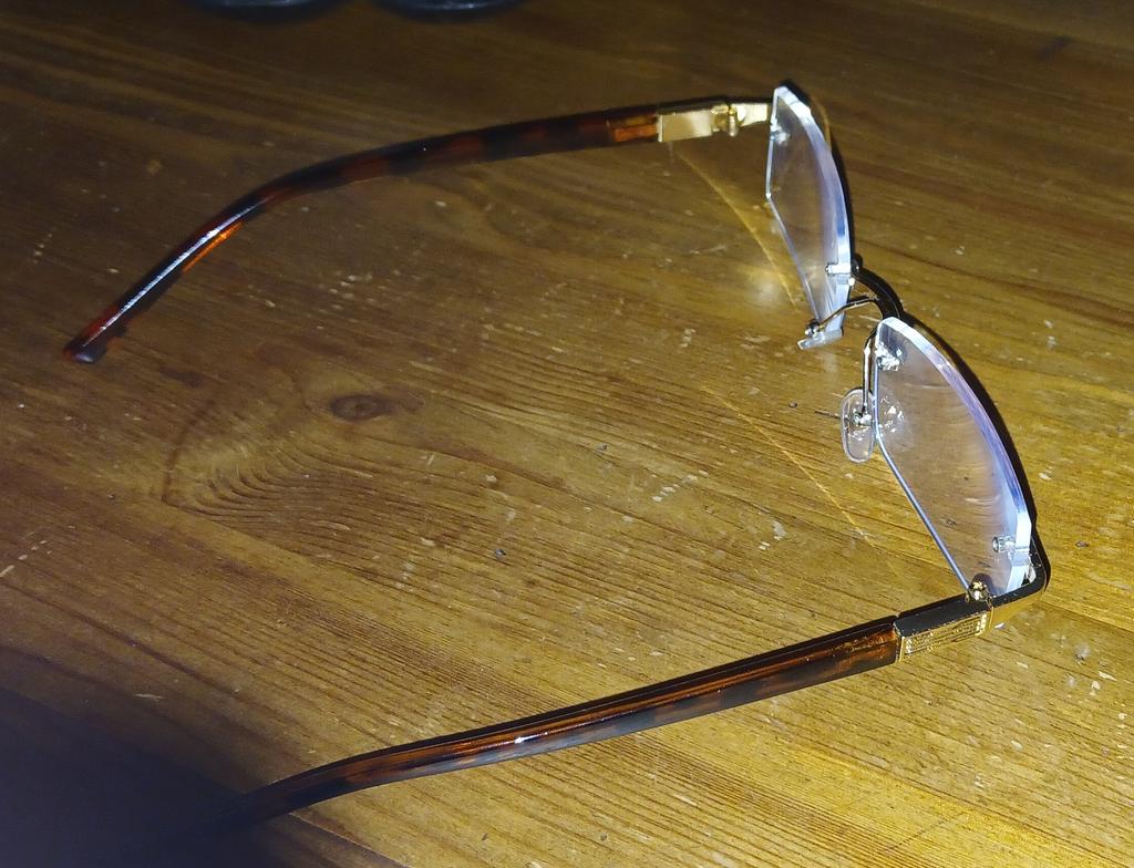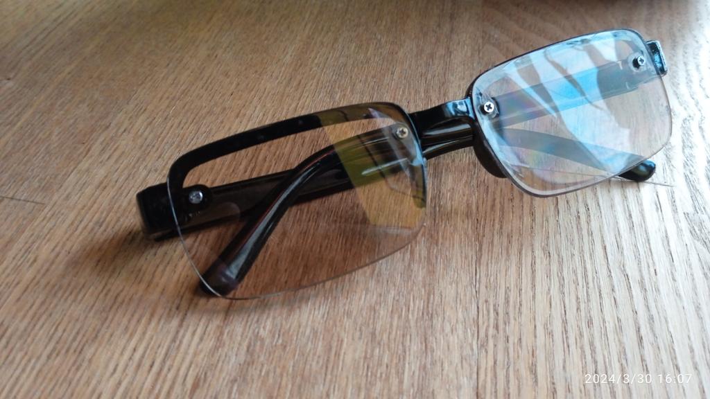 The glass is not very transparent, and there is also a scratch in the middle of the right lens.