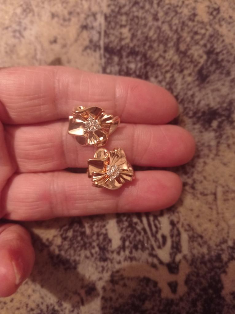 I received the parcel, but these are not the same earrings. These should be drop earrings with embossing in the form of flowers and zircons for 2.41 EUR, and I got something like a maple leaf, which probably costs a maximum of 50 hryvnias. I don't know why they treat us like this. Did the seller not distinguish flowers from leaves?