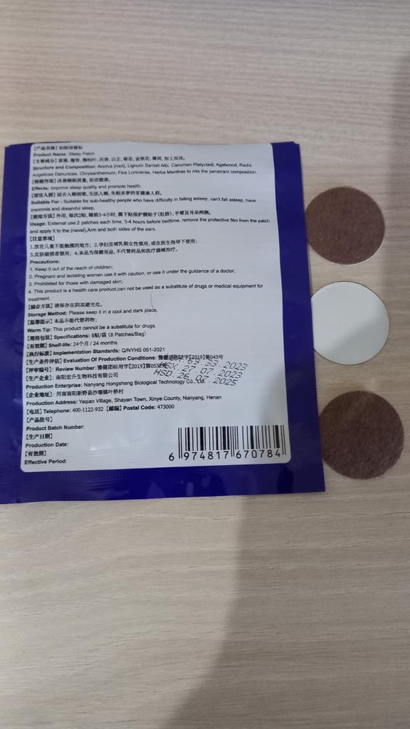 It arrived, thank you. In order for it to work, you need to glue 2 at once, 3 hours before bedtime, below the temple near the middle of the ear. It smells good of herbs, does not cause allergies with long-term use, does not burn. I recommend