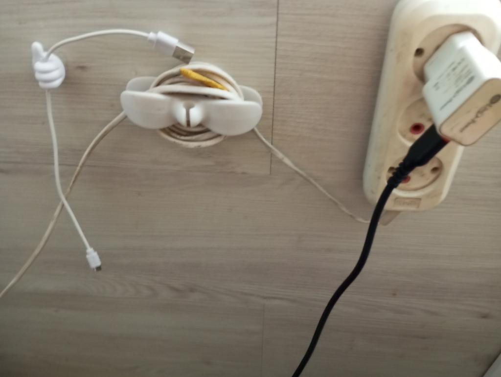Flexible cable holder. I took it to the car, I was tired of stomping around about charging. I glued it, wound it, it's beautiful)) Addition: the glue doesn’t hold, after a few days it fell off.