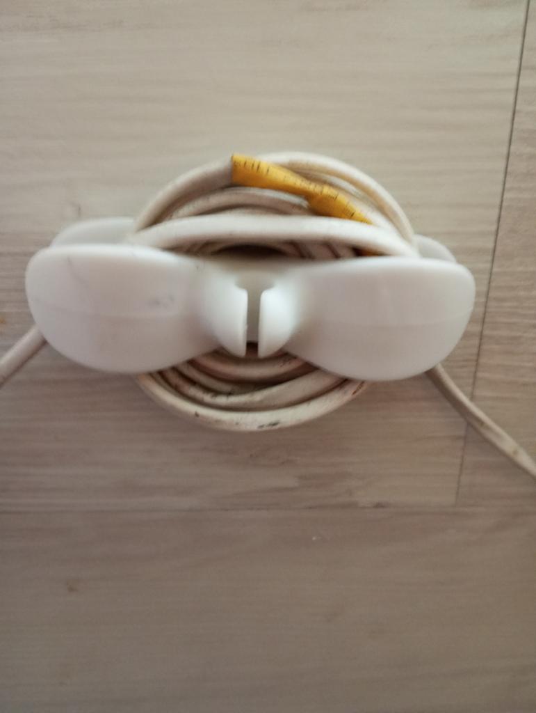 I was really looking forward to this device for wires. But the expectation was spoiled by reality. The mount is weak. Didn't last even 2 hours when mounted on the wall. Couldn't withstand the weight of 2 plugs from a microwave and a washing machine. Fell off. Very weak adhesive stick to the rubber (but not plastic) part of the holder. It would be possible to put additional (spare) adhesive material. Now it will just fall apart as an unnecessary element. Too bad!!!