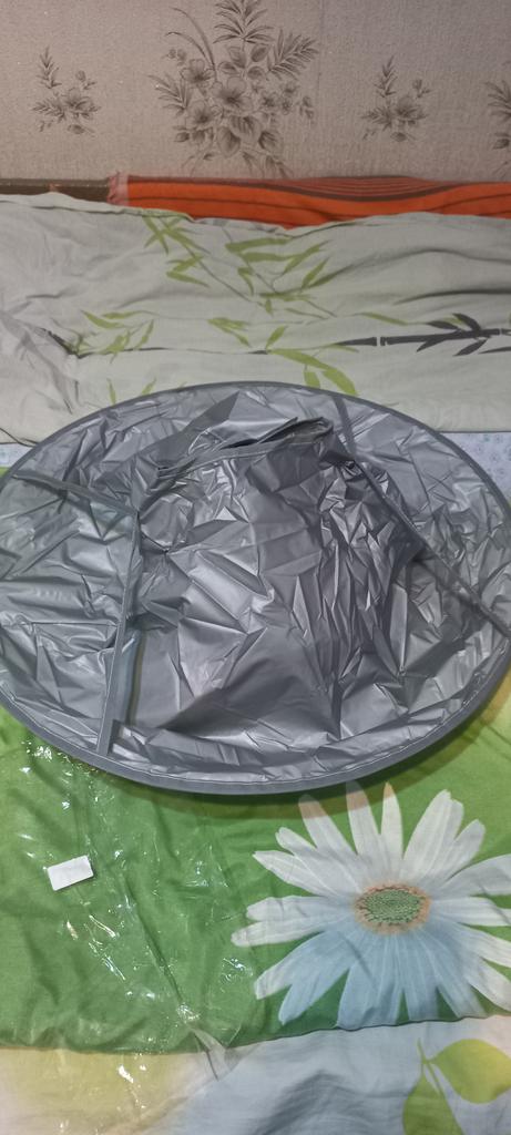 I received the product, bought it for cutting my grandchildren's hair, it will come in handy. Now I won't have to pick up hair from the floor. The quality of the product is good, when unpacking the hoop straightened out right away, but the collar is too big for a child.