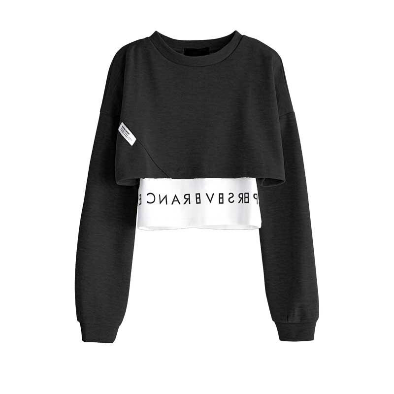 Korean Fake Two Piece Long Sleeve Black Tops All Season Patchwork Streetwear T Shirts