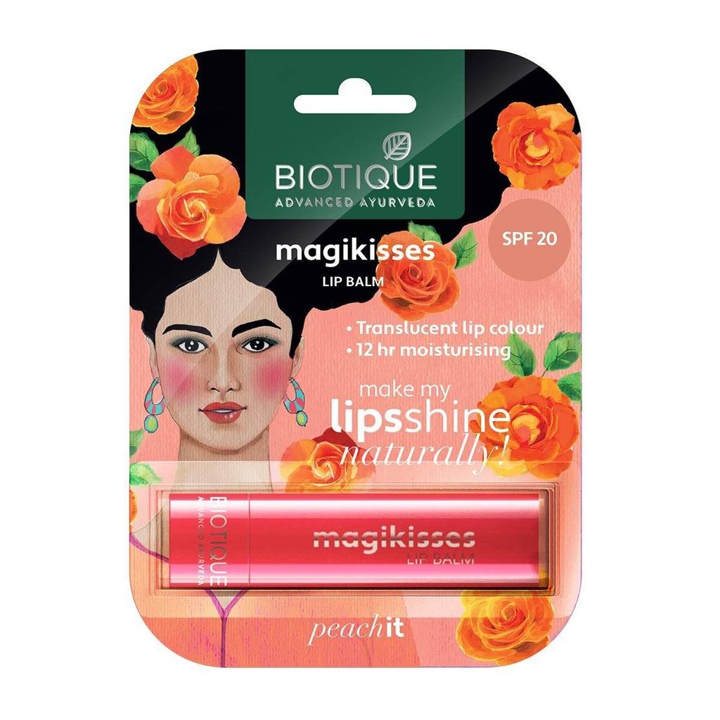 Lip Balm Peach (Magikisses Lip Balm Peach It) – natural remedy for the care of delicate skin of the lips. Formulated with pure botanical extracts and bio-advanced ingredients to nourish, hydrate and protect lips from environmental aggressors.. Balm with SPF 20 softens the lips, evens out their contour, heals small cracks and prevents dryness, peeling and chapping of the lips. In addition, the product improves the tone and texture of the lips, increases their elasticity and maintains the youth and beauty of the lips.. This persistent (till 12 o'clock) the balm has a translucent color and a sweet fruity aroma. It is suitable for daily use and for all skin types.