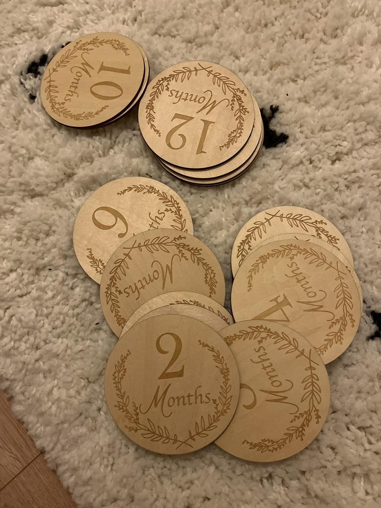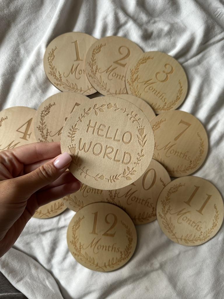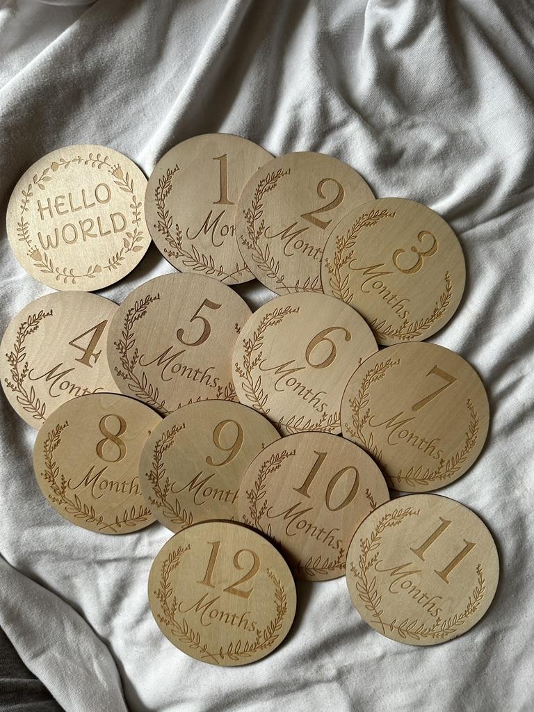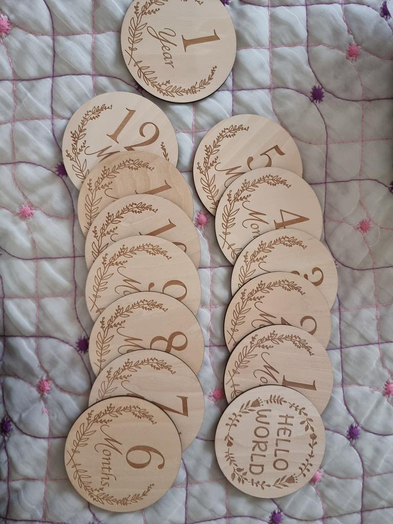 Handmade Wooden Baby Milestone Cards Born Birth Monthly Growth Recording Card