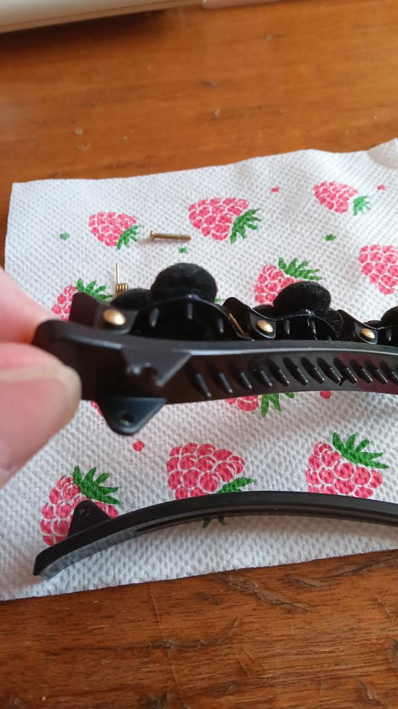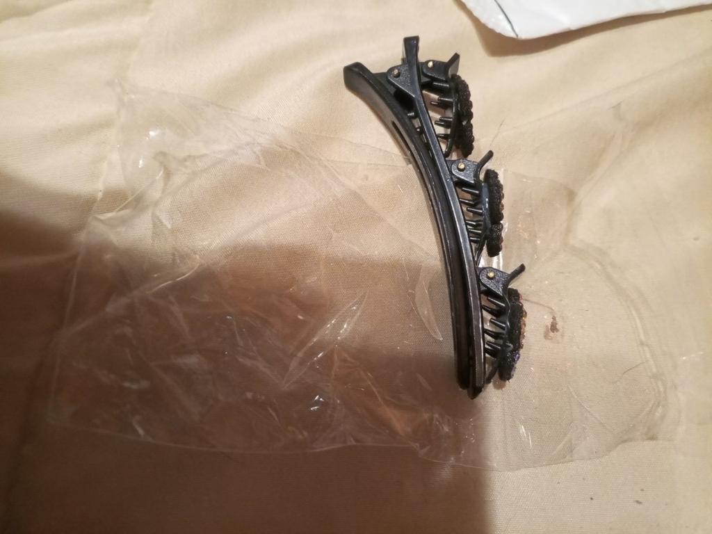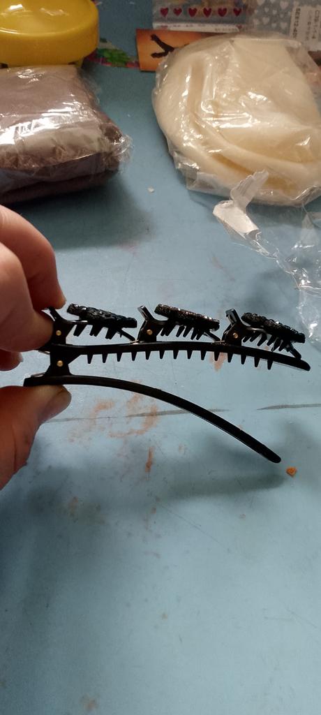 A rough barrette, you need a lot of hair to tuck it in, because the curls fall out, somehow it looks childish on the head