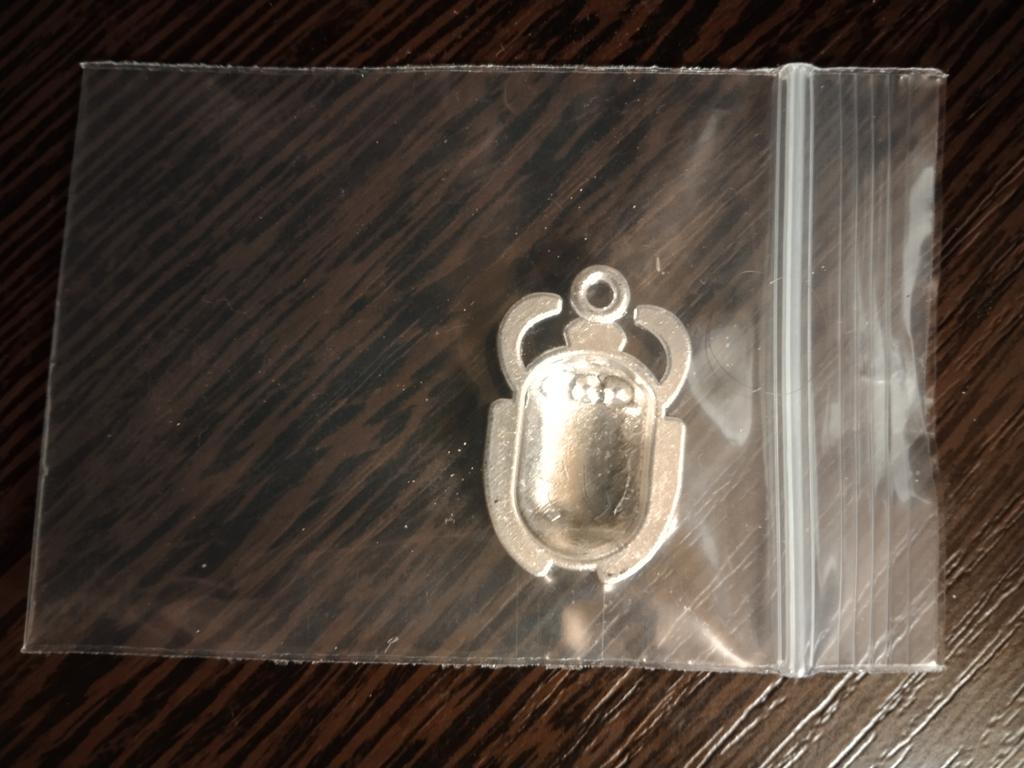 The scarab lacks a ring so that it can be hung on a chain. I recommend the manufacturer to solve this problem.
