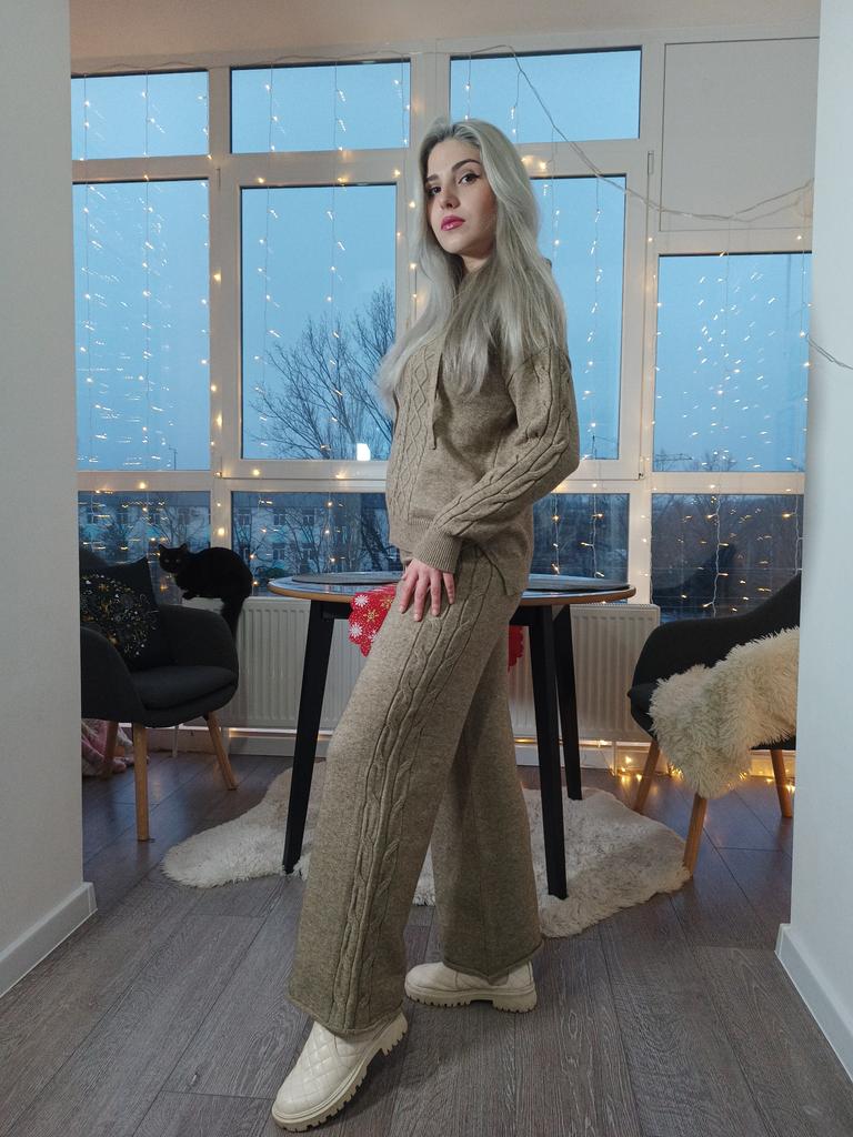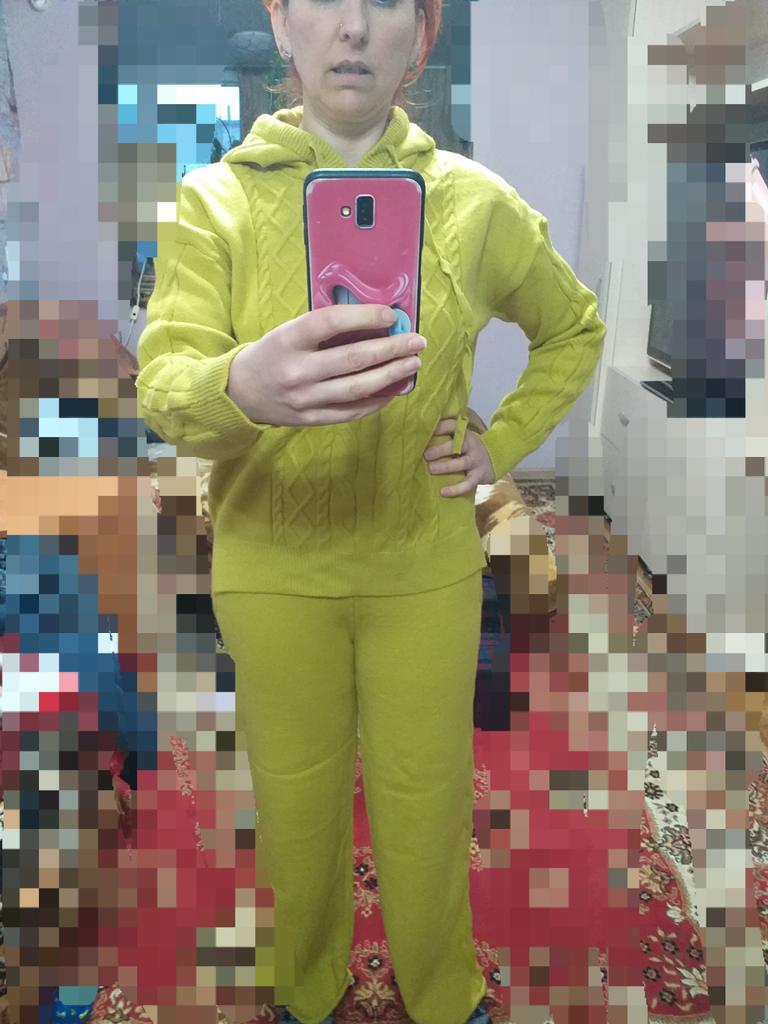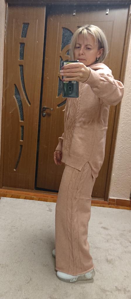 Wonderful knitted suit 👍👌💗❤💞. Very soft,💞 very comfortable,💞❤ very warm💞❤💗. I'm delighted 💗💗💗💗. I recommend!!! 💞💗❤. Definitely!!! ❤💗💞👍