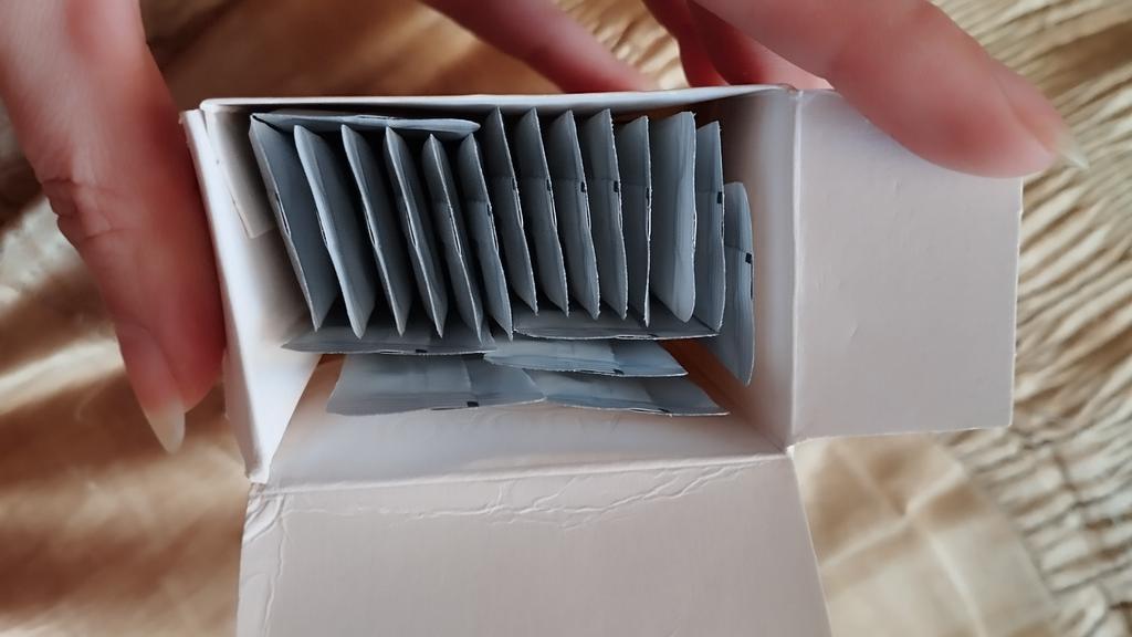 The super thin texture absorbs well, does not cause allergies, one sachet is enough for the face and neck