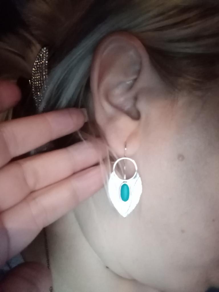 Everything as described. Beautiful earrings, they make an impression. They don't have plugs, but maybe a long bend behind the ear will be a good protection so as not to lose them. They look beautiful. Packaged appropriately to prevent damage. A bit long delivery. I recommend the seller 👍
