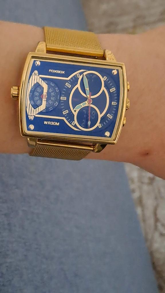 A beautiful watch and a gift box: both more beautiful than presented on the internet. The delivery took a while but I am very satisfied with the goods !!