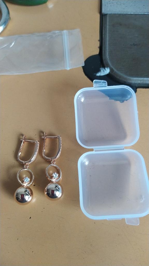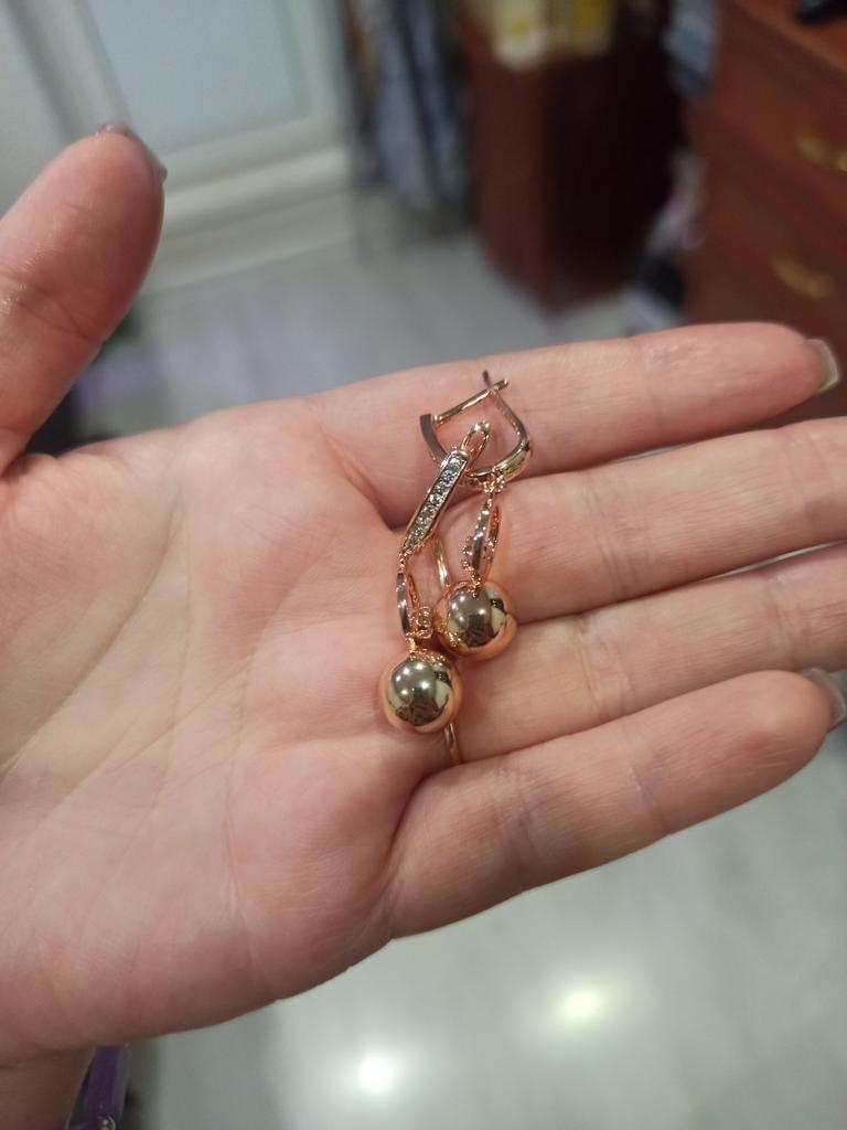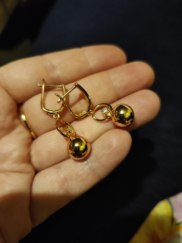 I received the earrings, they are wonderful! Very beautiful, light and shiny! Very similar to gold, the stones are all in place! Fast delivery! I am satisfied with the purchase, so I recommend it, girls, you will not regret it! Thanks Jum