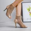Sandals Hollow Mesh Heels Women's Shoes Summer Black Lace-Up Sexy Peep Toe Boots Dance Female Shoes