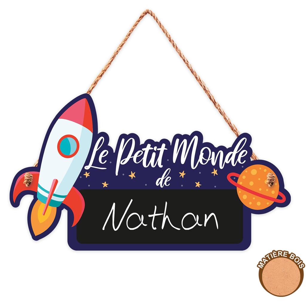 Les Trésors De Lily [A0713] - Customizable Wooden Plaque 'Le Petit Monde De . . . ' Blue (rocket) - 19. 5x11cm