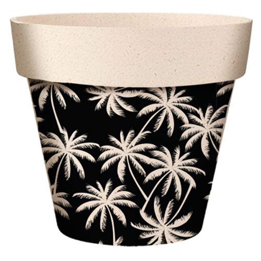 Les Trésors De Lily [A2064] - Black Beige 'Palm Trees' Bamboo Planter - 14x12 Cm
