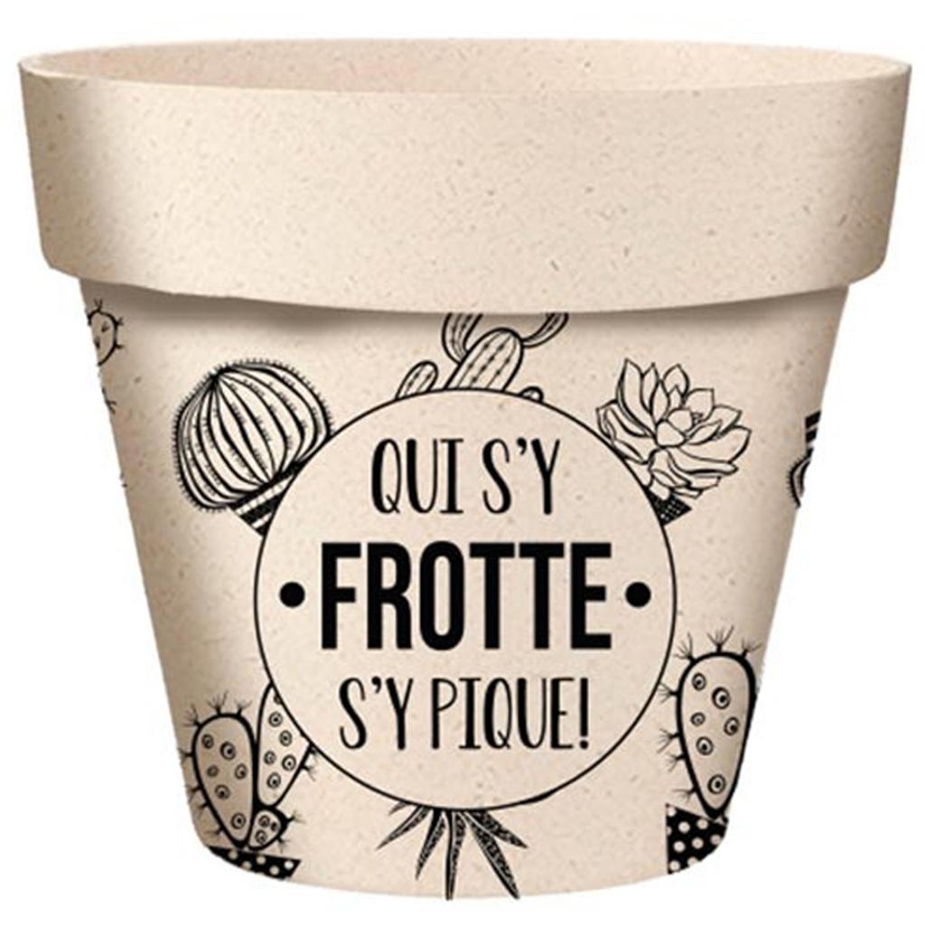 Les Trésors De Lily [A2073] - Bamboo Plant Pot 'He Who Rubs It, Gets Pricked! ' Black Beige - 7x6 Cm