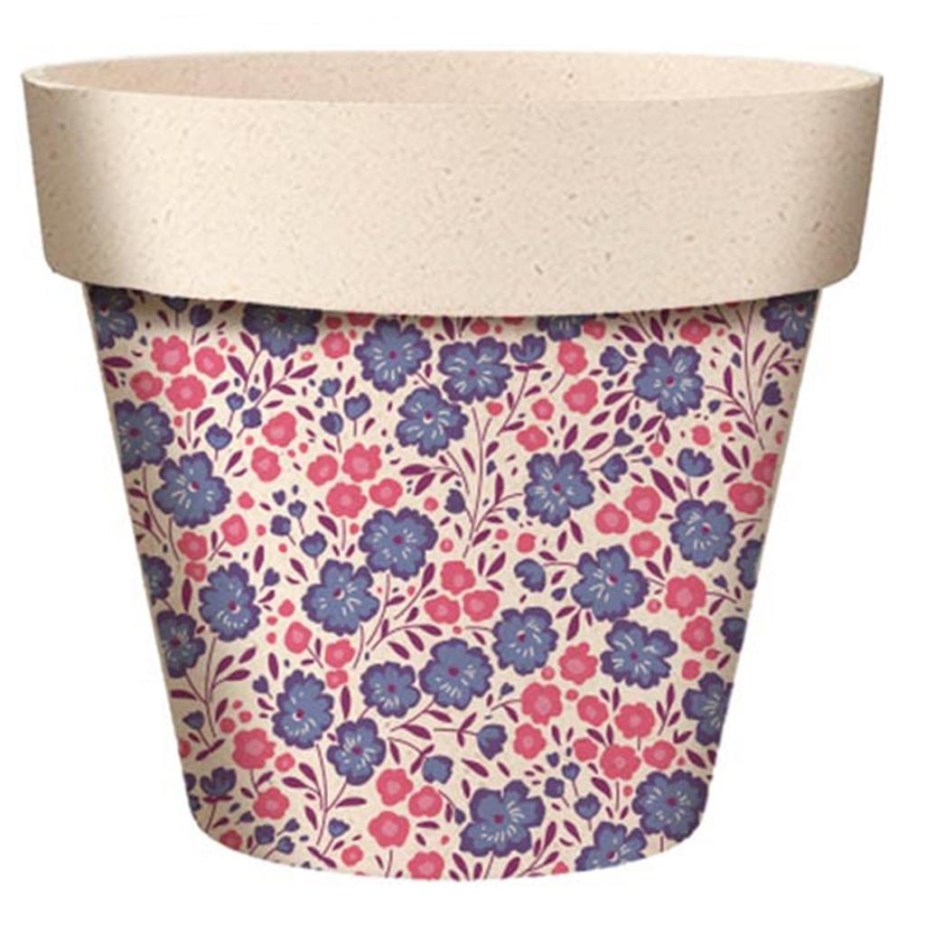 Les Trésors De Lily [A2160] - Bamboo Planter 'Flowers' Purple Beige - 22x21 Cm