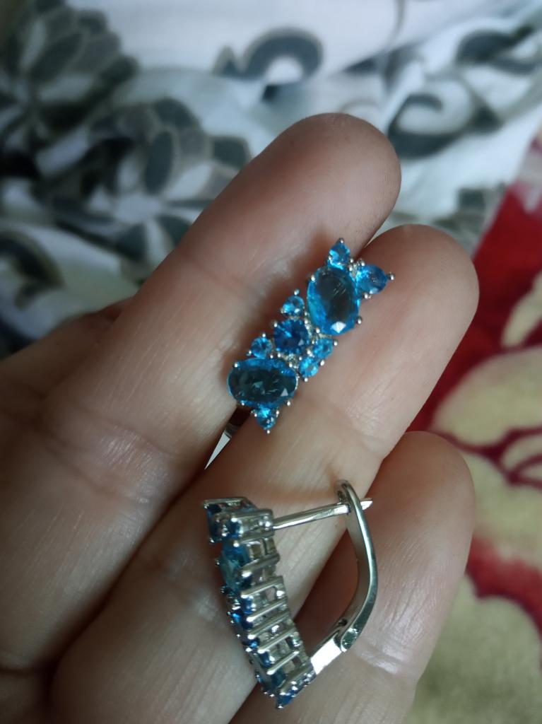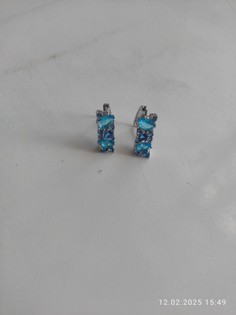 Geometry Female Silver Color Round Oval Cut Aqua Blue Stone Drop Earrings for Women CZ Ear Studs Anniversary Gift