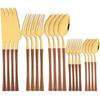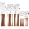 Jankng 20Pcs Imitation Wood Handle Cutlery Set Knife Fork Spoon Dinnerware Set Western Kitchen Stainless Steel Tableware Set