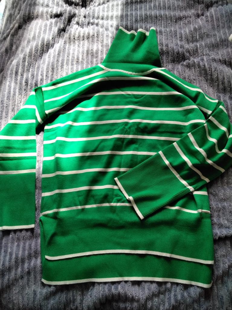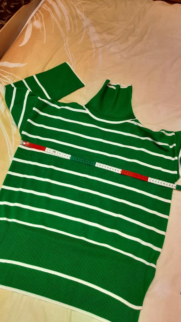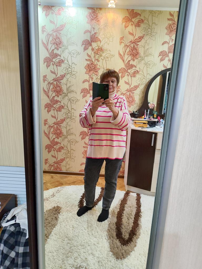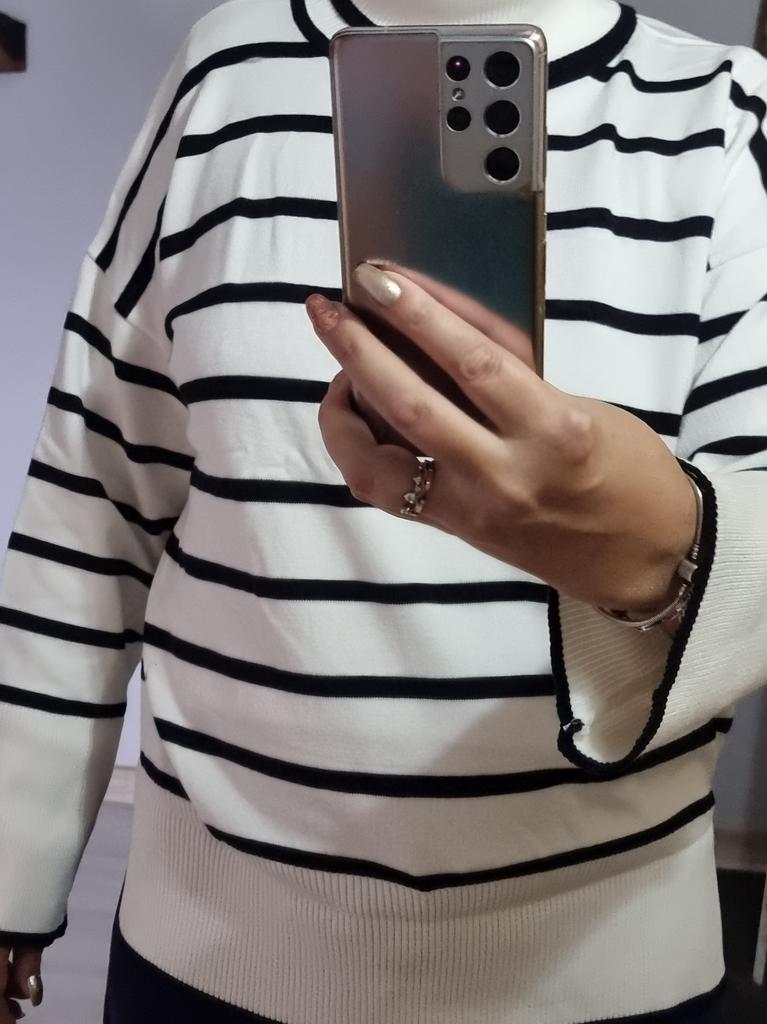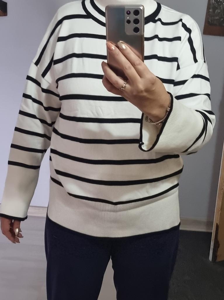 Striped blouse This blouse is one size fits all and fits me, I'm 1.58m. The material is elastic, warm and of high quality, it does not enter the water after washing ☺️ the sweater is exactly as in the pictures posted by the seller 👍🏼 I highly recommend it ☺️ I have 2 more from here and I am very satisfied ♥️