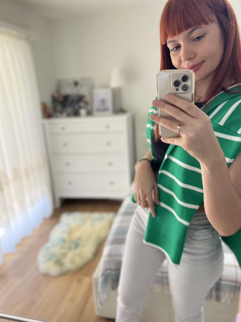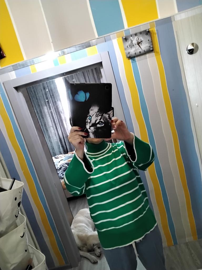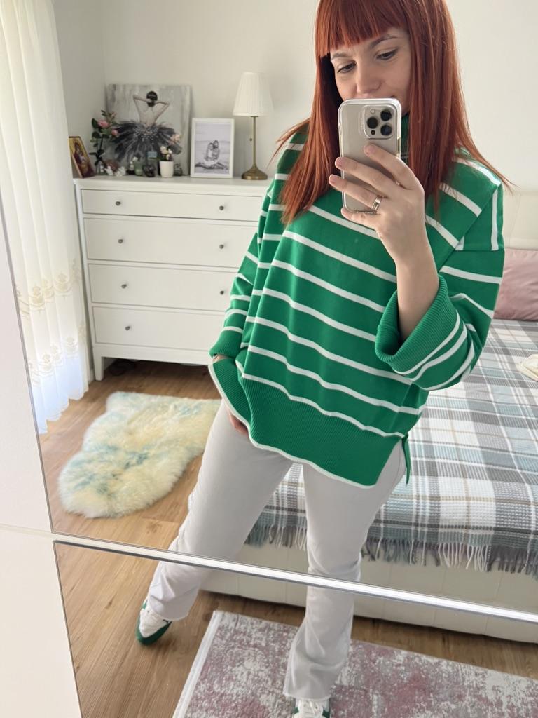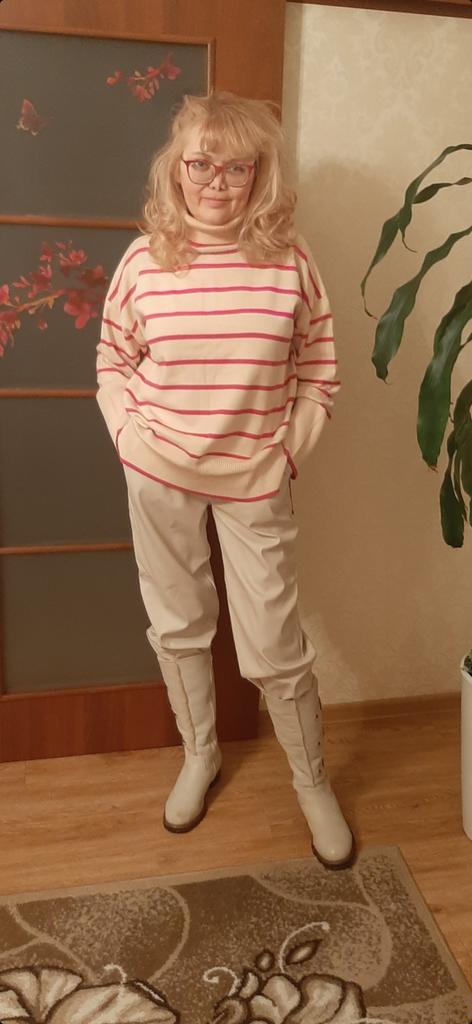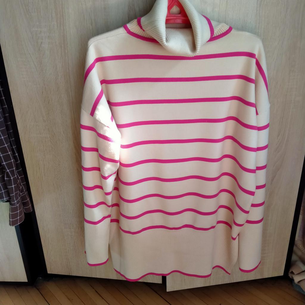 Striped blouse This blouse is one size fits all and fits me, I'm 1.58m. The material is elastic, warm and of high quality, it does not enter the water after washing ☺️ the sweater is exactly as in the pictures posted by the seller 👍🏼 I highly recommend it ☺️ I have 2 more from here and I am very satisfied ♥️