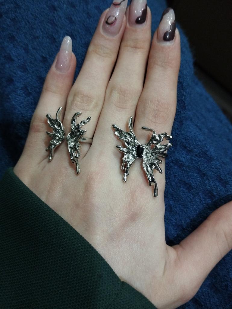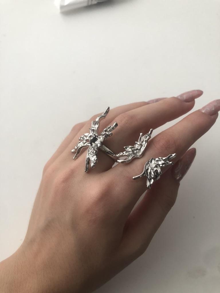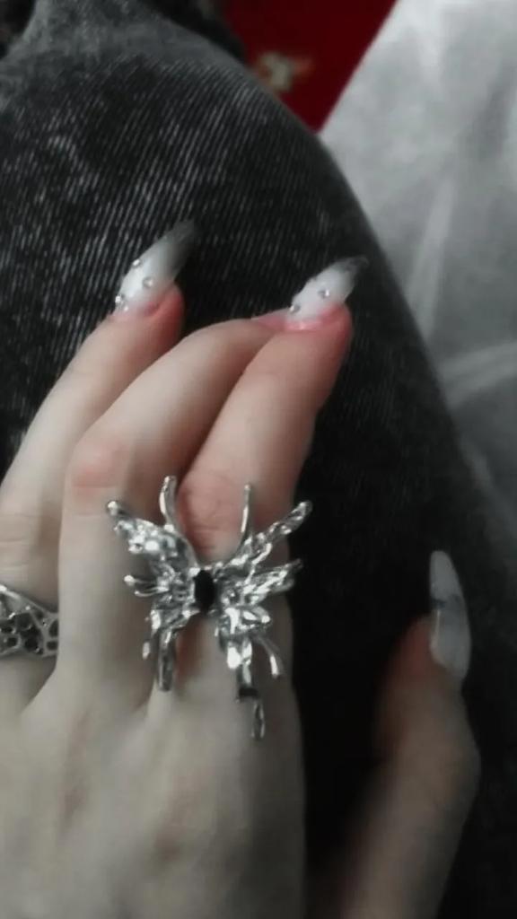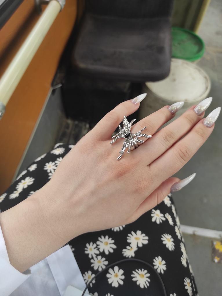 Punk Liquid Butterfly Open Rings Adjustable Women‘s Rings Fashion Vintage Metal Couple Ring Gothic Exaggerated Jewelry