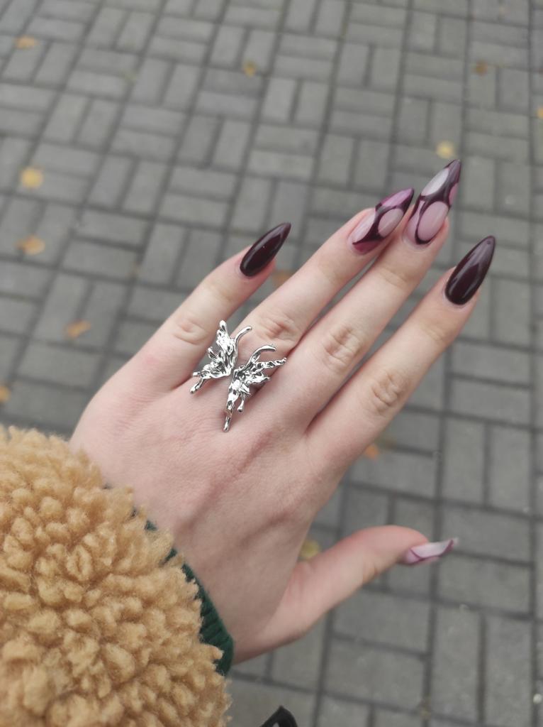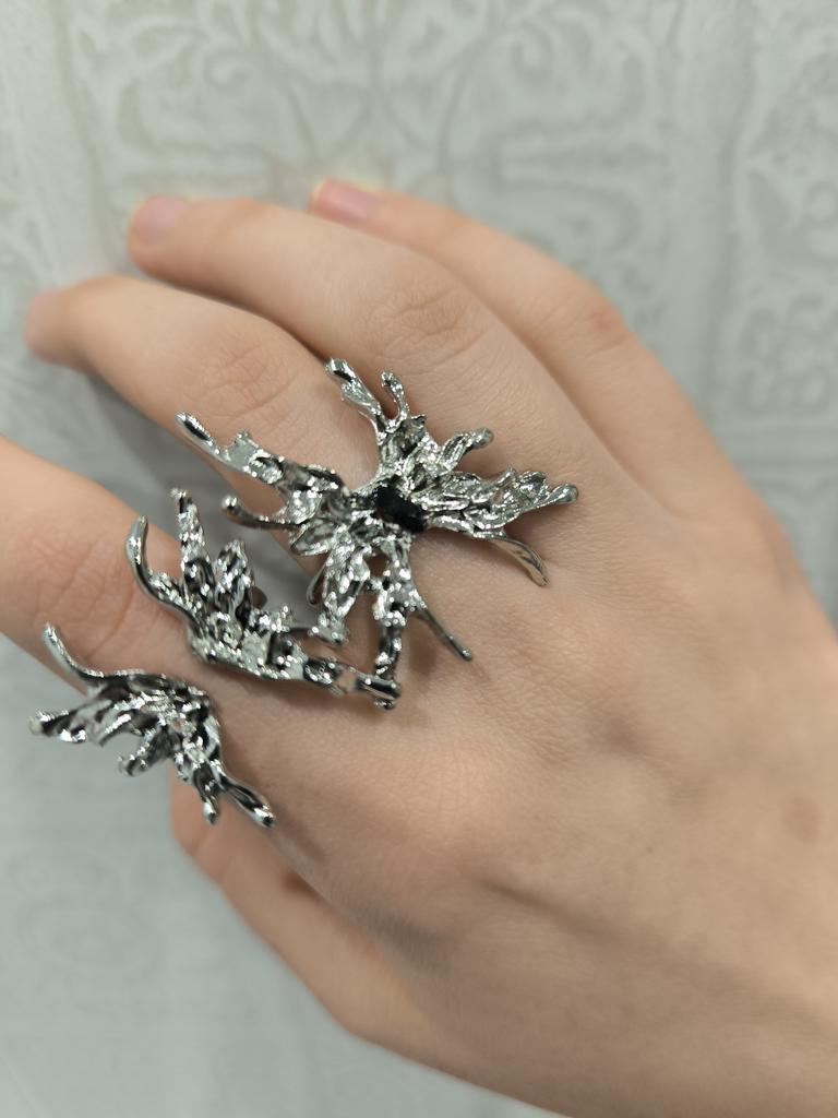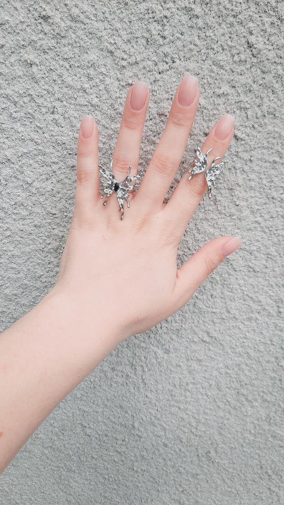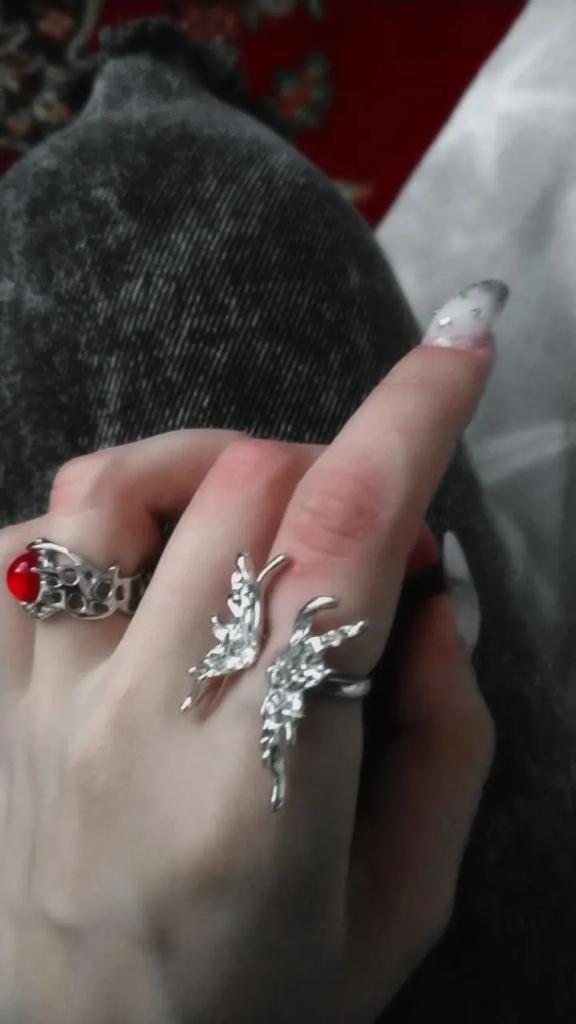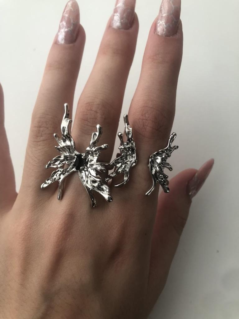 Punk Liquid Butterfly Open Rings Adjustable Women‘s Rings Fashion Vintage Metal Couple Ring Gothic Exaggerated Jewelry
