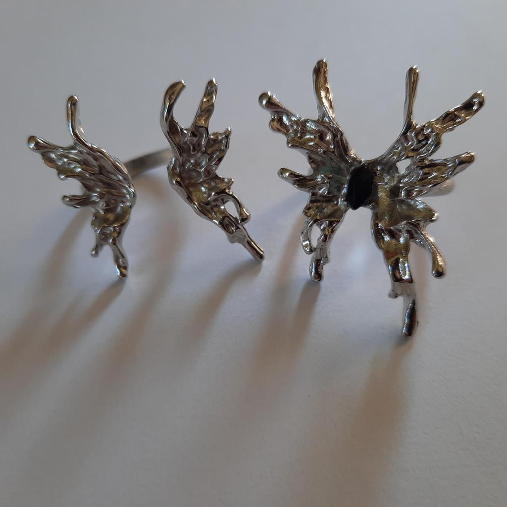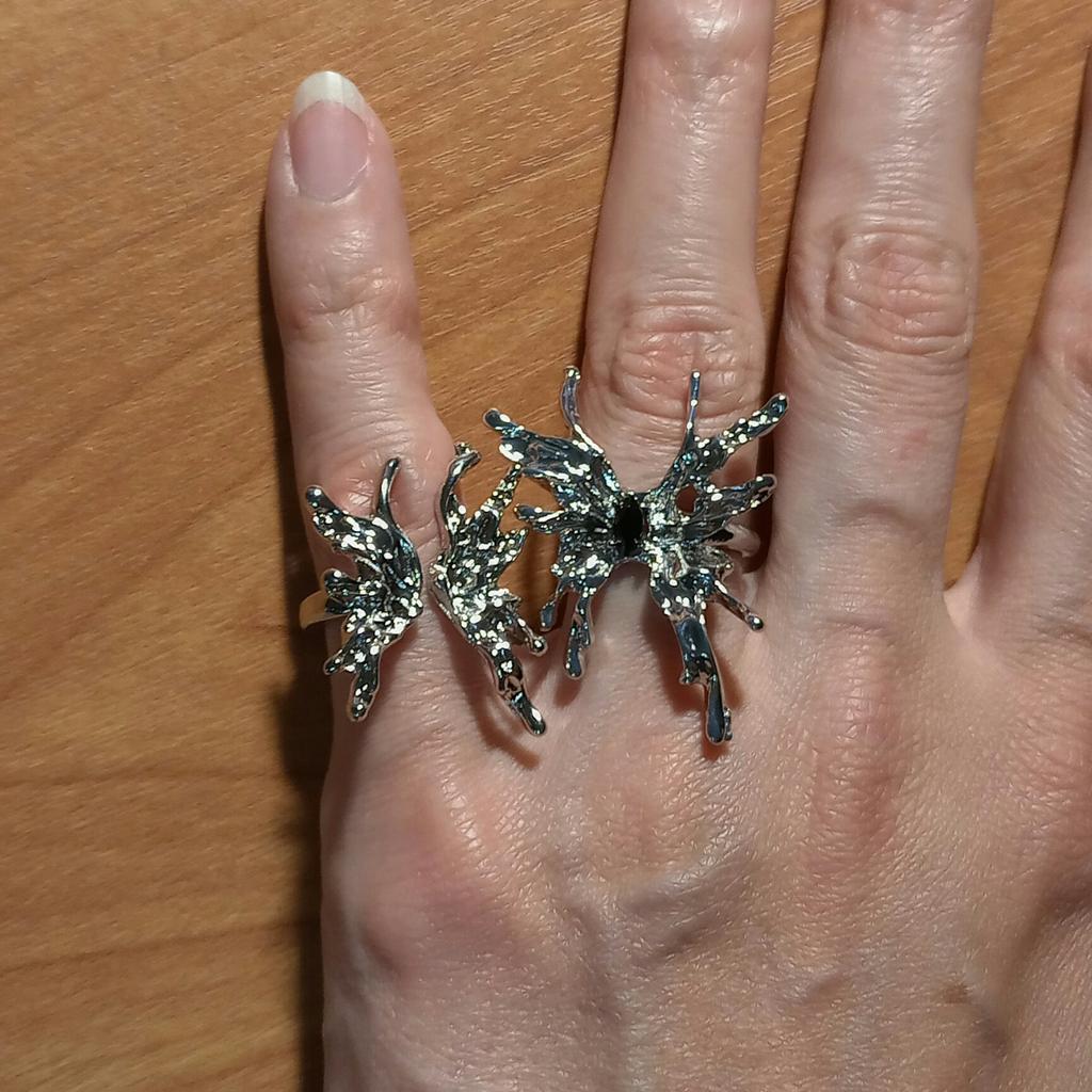 The rings arrived in exactly three weeks, in good condition, the size is adjustable. The ring with a black stone has a little extra material at the back, which can be seen in the photo, but it is not critical. I am satisfied with the purchase, I recommend it