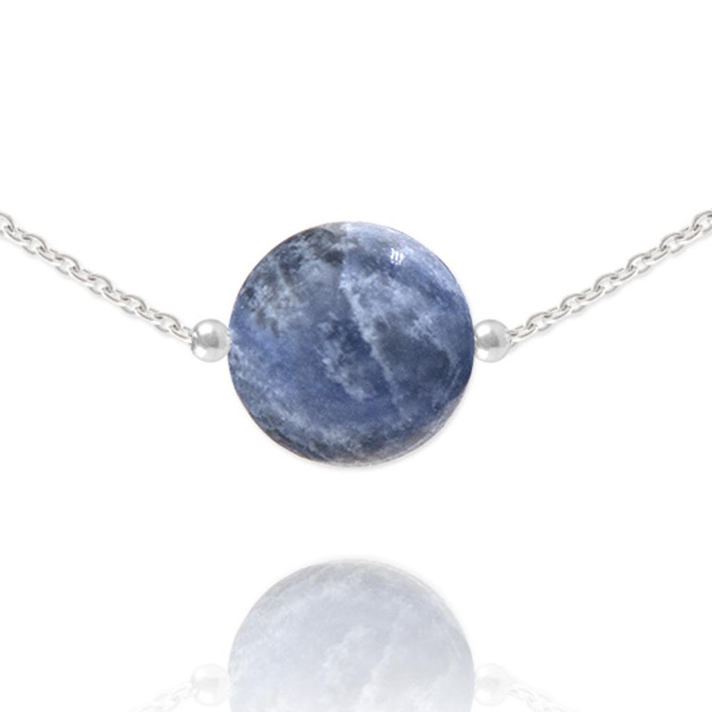 Les Trésors De Lily [R5966] - Artisanal Silver Necklace 'Mineralia' Silver Sodalite - 10 Mm